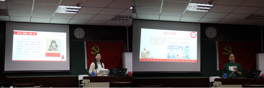 北京师范大学红十字会(学生分会)献血与人道推广中心部长山硕楠用轻松幽默的语言向同志们科普了献血和捐献造血干细胞的相关知识。她详细讲解了无偿献血从报名登记、体格检查、采血过程到采后注意事项的一系列流程,介绍了中华骨髓库的基本情况,针对一些常见问题和误区作出了科学的解释和回应。本次科普打消了献血者的顾虑,让同志们对献血和造干有了更为全面深入的了解。
