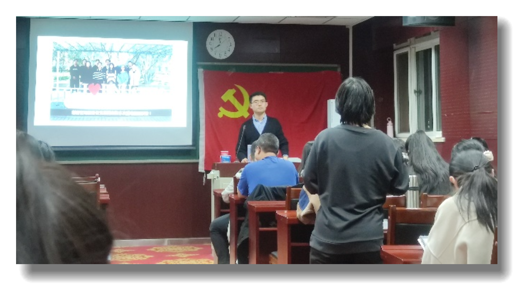 曹玮老师首先结合科研和留学经历讲述了自己身为学生阶段的所见所闻,其次描绘了由学生到青年教师身份转变的心路历程,以生动幽默的形式将自己宝贵的科研体会进行了分享。并表达了新青年一辈将坚持中国共产党的领导,坚定的跟随祖国的脚步,砥砺前行!参会的成员们也以饱满的热情与曹玮老师进行了面对面的交流与互动。