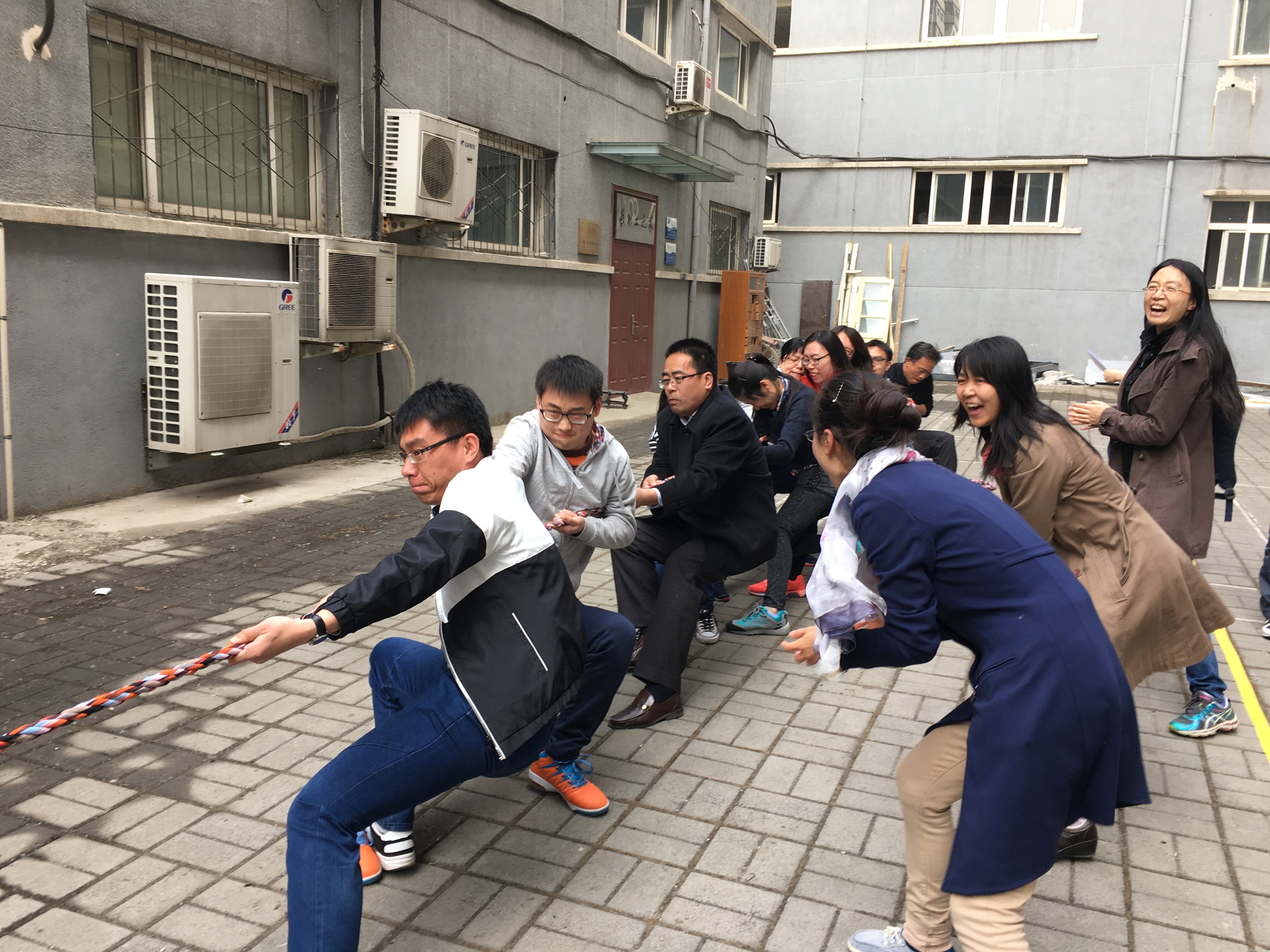 2016年4月13日下午,化学学院拔河比赛在学院的东小院举行。经过多轮激烈较量,无机和分析工会小组获得了冠军,2014级1班的同学获得了亚军,物化和量化工会小组获得季军。在号子和加油声中,拔河比赛为2016年北京师范大学化学学院体育月拉开了帷幕。