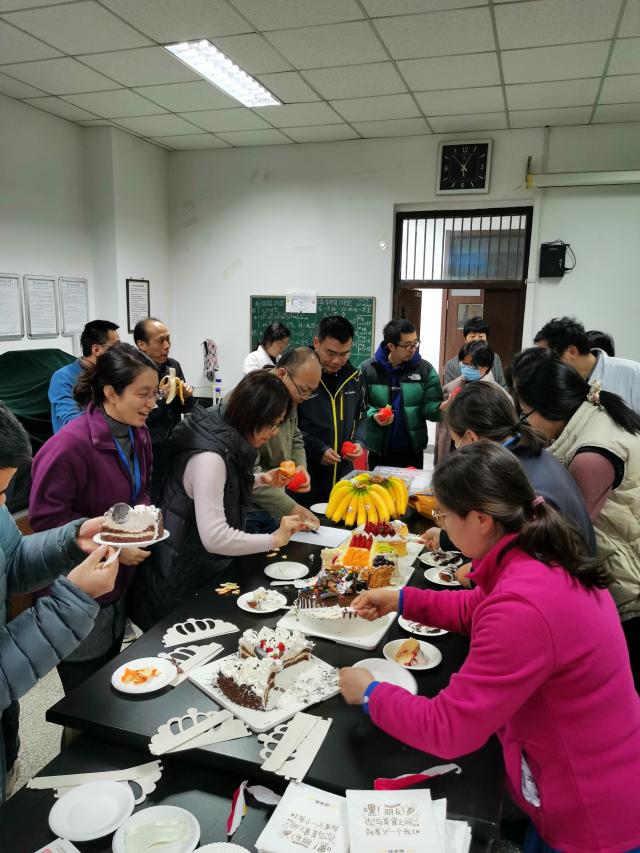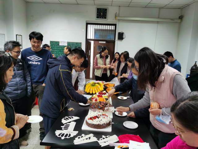 2021年12月9日下午,化学学院工会在化学楼119室为全院老师举行了生日庆祝活动。这是本年度最后一次为老师集体过生日,化学学院领导和工会委员向过生日的老师表示祝贺。在生日歌的祝福下,大家开心地切开蛋糕,共祝生日快乐。