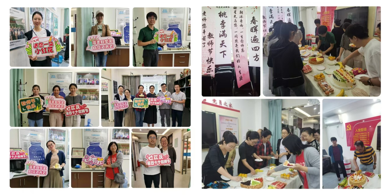 值此第40个教师节,化学学院工会于9月10日下午在工会活动室成功举办庆祝教师节及教师集体生日活动。40余名教师欢聚一堂,共庆佳节,学院领导及工会委员向过生日的教师致以诚挚的祝福,并共同分享蛋糕,现场气氛温馨热烈。特别安排了手牌打卡拍照和心愿星投递等环节,深受教师好评。