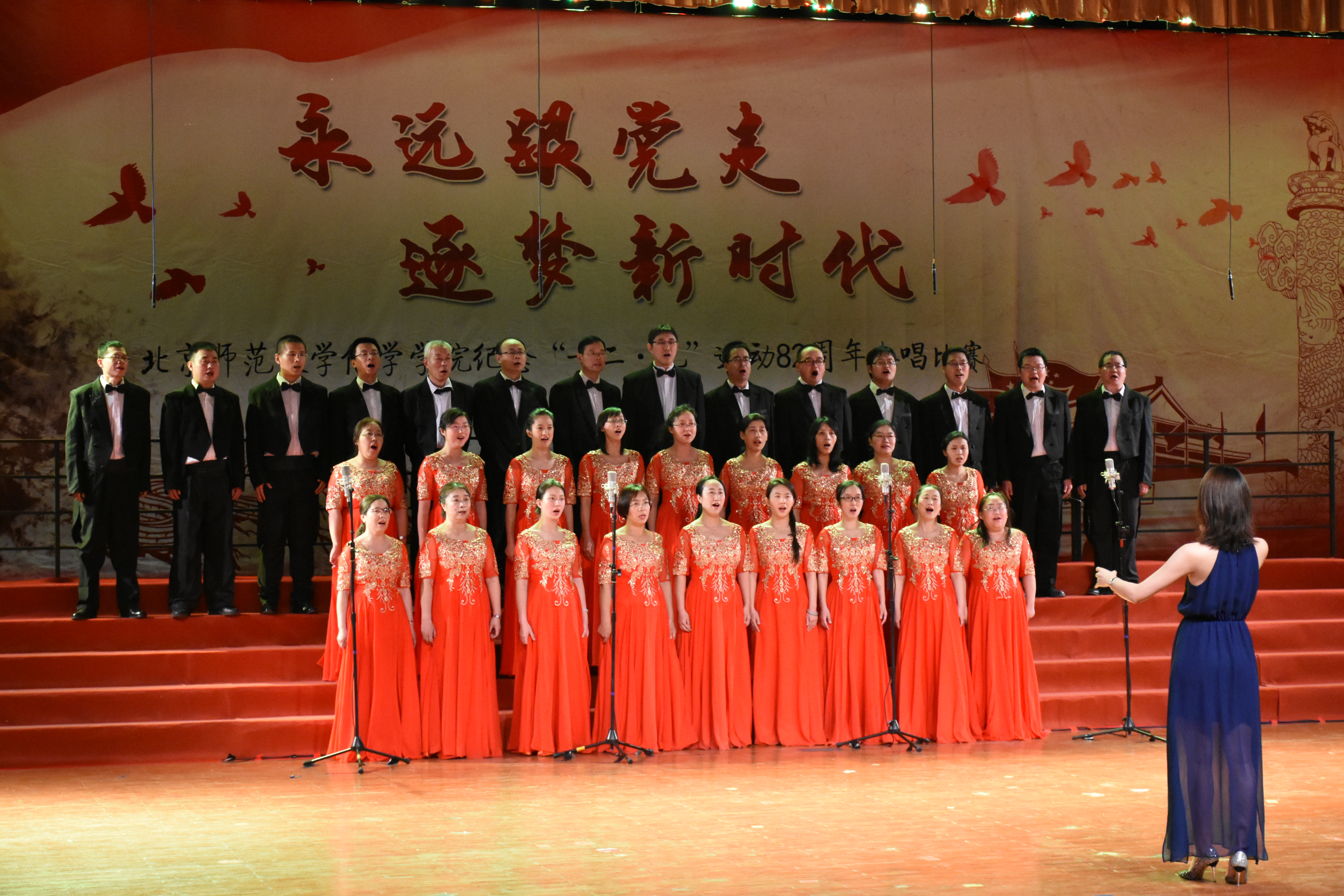 2017年12月5日晚,“永远跟党走,逐梦新时代”北京师范大学化学学院纪念 ‘一二•九’运动82周年合唱比赛在学生活动中心举行。北京师范大学副校长陈光巨老师、辅导员培训和研修基地执行副主任王显芳老师、本科生工作处副处长隋璐璐老师、学生就业与创业指导中心主任白勇老师等党委宣传部、校工会、本科生工作处、辅导员培训和研修基地等单位的负责同志,以及化学学院党政负责同志出席晚会。北京师范大学京师女声合唱团团长丛玲老师,教工合唱团副团长沈淑艳老师等5位师生担任本次比赛的评委。