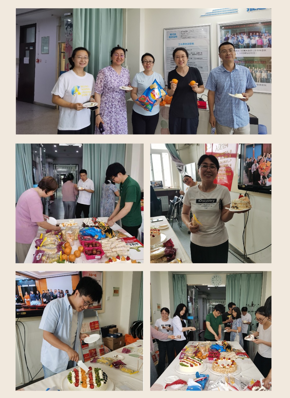 为庆祝中华全国总工会成立一百周年,传承百年工运精神,营造学院团结和谐的氛围,化学学院工会开展了丰富多彩的活动。7月4日下午,化学学院工会在工会活动室为全院老师举行了集体生日活动。全院共有40余名老师参加了庆祝活动,化学学院领导和工会委员向过生日的老师表示祝贺。在生日歌的祝福下,大家开心地切开蛋糕,共祝生日快乐。“生日集体庆祝会”是我院坚持多年开展的一项活动,是学院文化建设和凝聚学院教职工的温暖工程,得到了学院领导的大力支持,也受到教师们的热烈欢迎。通过集体生日会活动希望让每一位老师感受到学院大家庭的温暖与关怀,促进教师之间的交流,提升学院文化建设,让工会真正成为教师之家。
