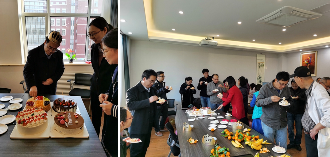 接着,化学学院工会还在化学楼314室为全院老师举行了生日庆祝活动,院工会也借此机会向全体教师送上生日的祝福。这是本年度首次为老师集体过生日,化学学院领导和工会委员向过生日的老师表示祝贺。在生日歌的祝福下,大家开心地切开蛋糕,共祝生日快乐。“生日集体庆祝会”是我院坚持多年开展的一项活动,是学院文化建设和凝聚学院教职工的温暖工程,得到了学院领导的大力支持,也受到教师们的热烈欢迎。