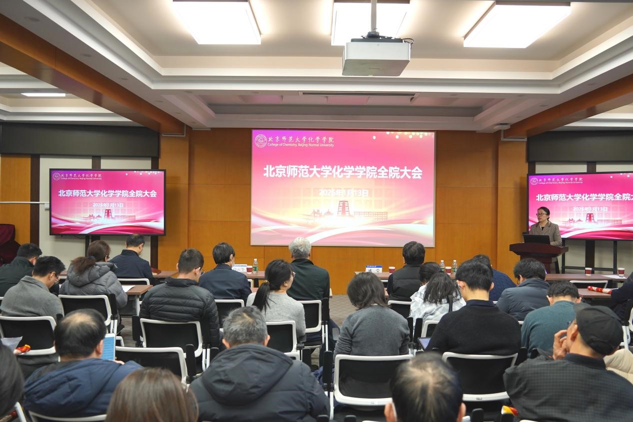 2026年1月13日,北京师范大学化学学院在二楼会议室召开全院教职工大会暨2025年度党政领导班子述职测评会。会议由学院党委书记杨钊主持,学院百余名教职工参加了本次会议。