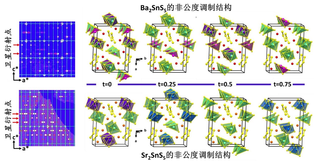 在天然矿物或人工合成的固体材料中,有极少数特殊晶体并不只简单具有普通晶体结构那种三维平移对称性, 而在其中同时存在周期性的畸变结构。这种畸变量的分布可以用“波”的形式表示, 该“波”称为调制波,具有这种特性的晶体结构称为调制结构。非公度调制结构可以引发很多有趣的物理现象,如高温超导,铁电性质,以及电荷密度波(CDWS)等。但是,将非公度调制结构与非线性光学性质联系起来的科学研究迄今还非常罕见。由于非公度调制结构不能用三维空间描述,所以解析这类结构具有一定的难度和挑战性。