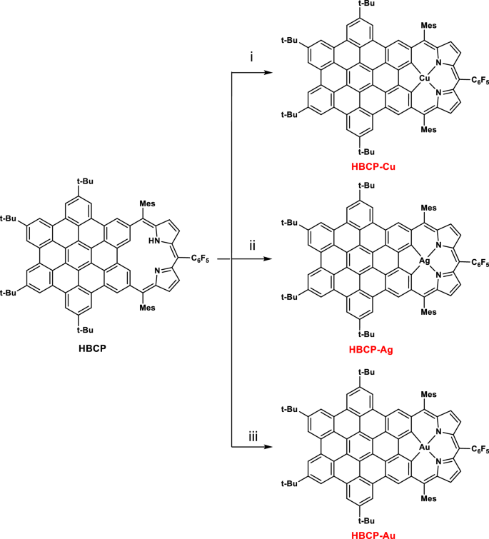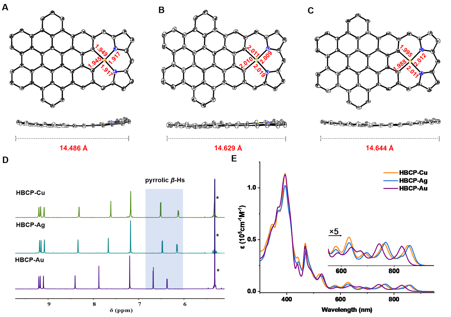 图3. 纳米石墨烯金属配合物HBCP-M的结构表征