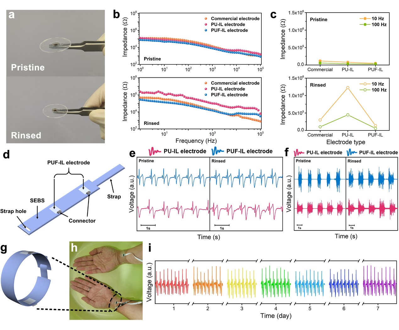 图3 PUF-IL电极可长期稳定检测表皮电生理信号并用于智能腕带