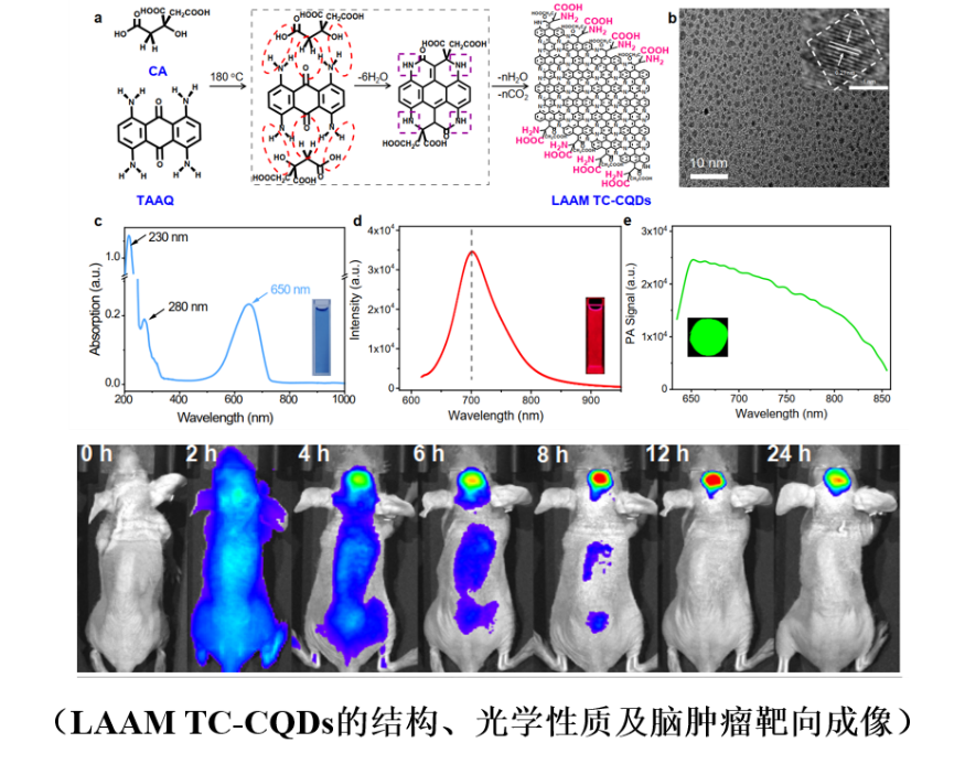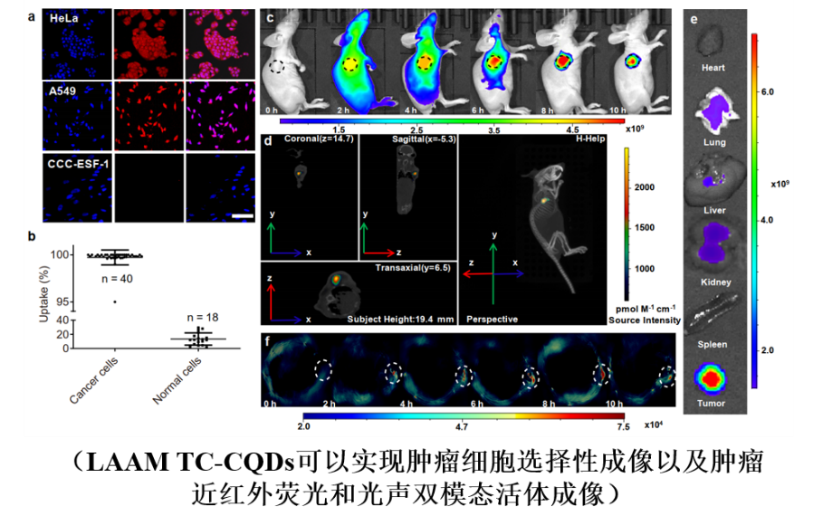 不论肿瘤的来源、位置和种类,对其进行特异选择性成像与给药而不影响正常组织是癌症诊疗面临的重大挑战。北京师范大学范楼珍教授课题组研发了一种结构类似大的氨基酸的碳量子点(LAAM CQDs)有望解决这一问题。