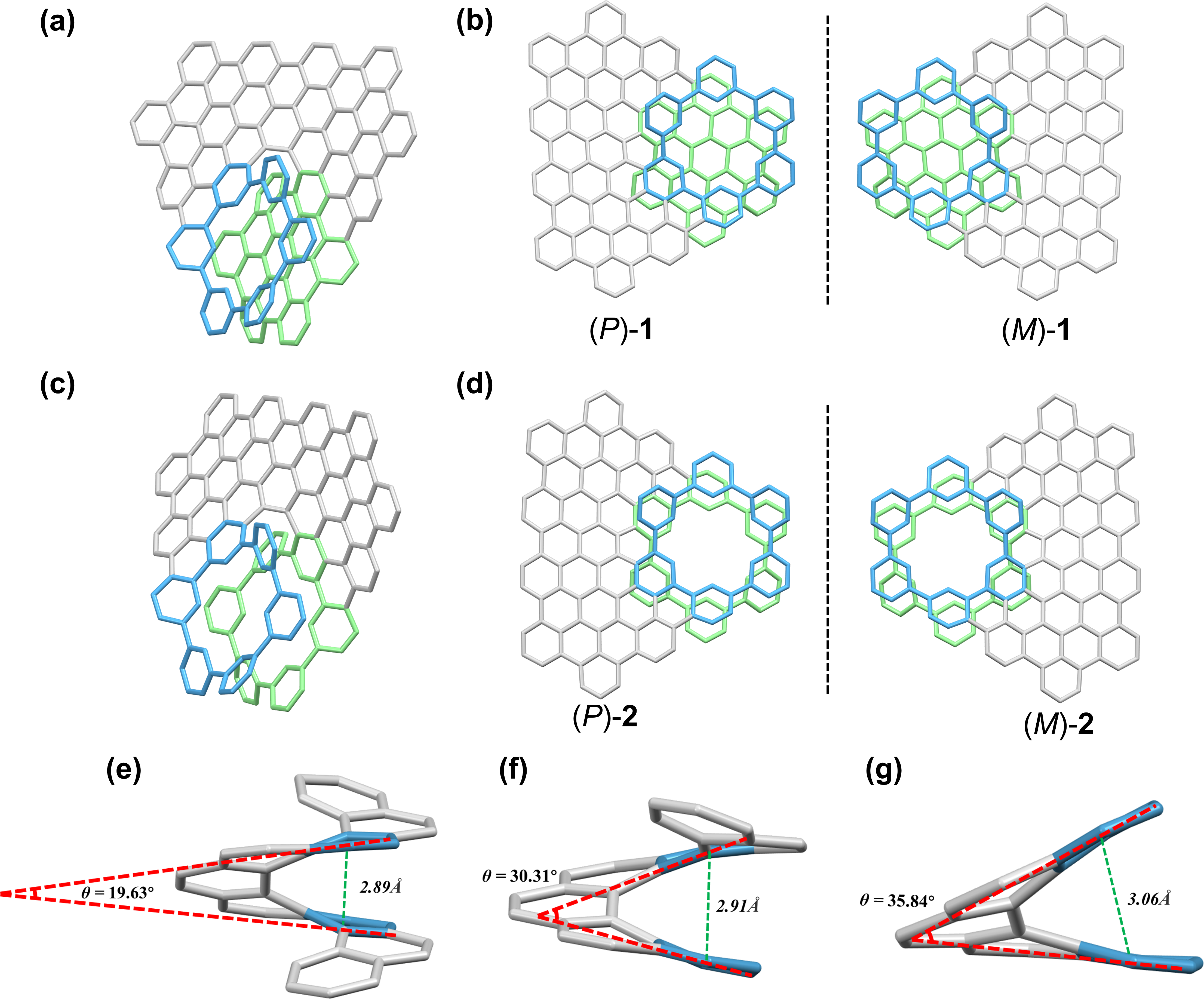 本工作采用自下而上的合成策略将孔缺陷引入到全共轭的π-扩展螺烯分子,系统研究了缺陷的引入对结构和基本光电性质以及手性光学性质的规律性影响。发现具有聚集引起淬灭 (ACQ) 特性的无缺陷的扩展螺烯可以转化为具有双态发射 (DSE) 和双态圆偏振发光特性的新型螺烯分子,在固相圆偏振发光(CPL)中也显示出潜在的应用价值,并为进一步开发具有双态发射的全碳氢纳米石墨烯提供了新的策略。