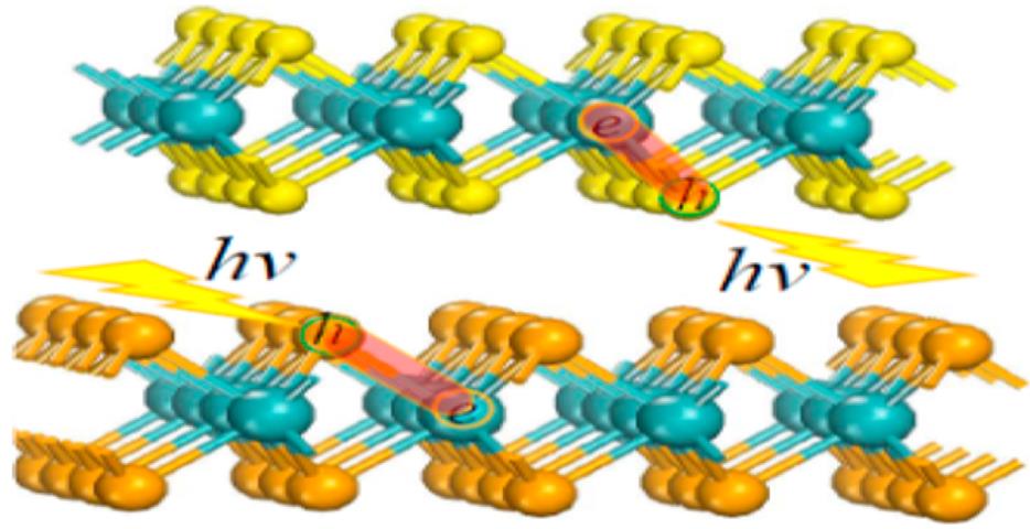 二维金属硫族化合物(MX2, M=Mo, W; X= S, Se)由于其优异的电子和光学性质,在光催化及光伏领域具有重大的应用情景。为了实现高效的光电转换,光激发的电子-空穴对必须分离为自由的电子和空穴。由于MX2中电子-空穴库伦相互作用比电荷分离的驱动力大,研究人员普遍认为MX2及其异质结的电荷分离效率低。然而,大量的实验却发现与之相反的现象,及在众多MX2异质结中观测到层间超快电子和空穴转移,从而实现电子-空穴对的有效分离。但是促使MX2异质结电荷有效分离的内在物理原因一直存在争论。