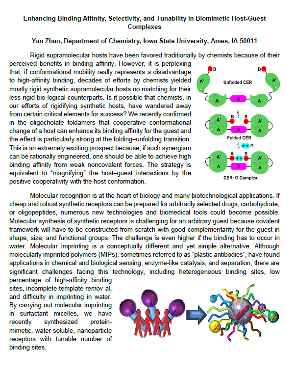 学术报告:美国爱荷华大学,赵縯 教授,Enhancing Binding Affinity, Selectivity, and Tunability in Biomimetic Host-Guest Complexes
