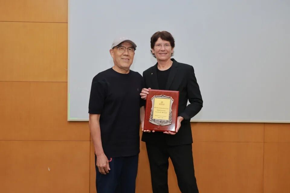 方维海代表学校向Bertozzi教授颁授 京师大讲堂纪念牌,对她所带来的精彩报告和对于科学研究的深度启迪致以诚挚谢意。