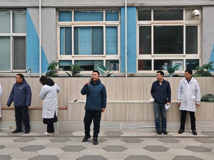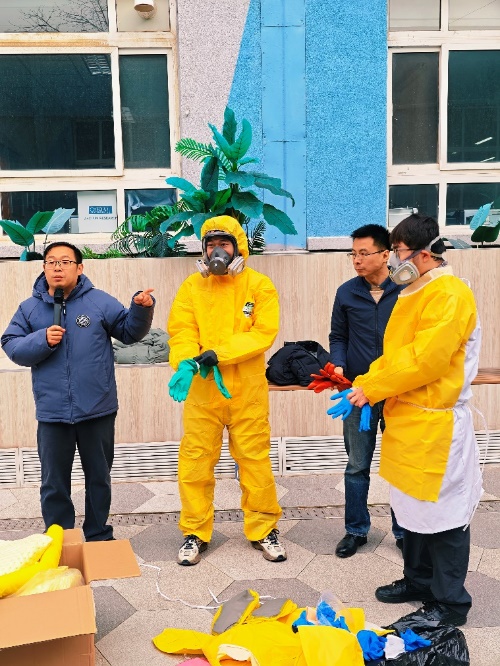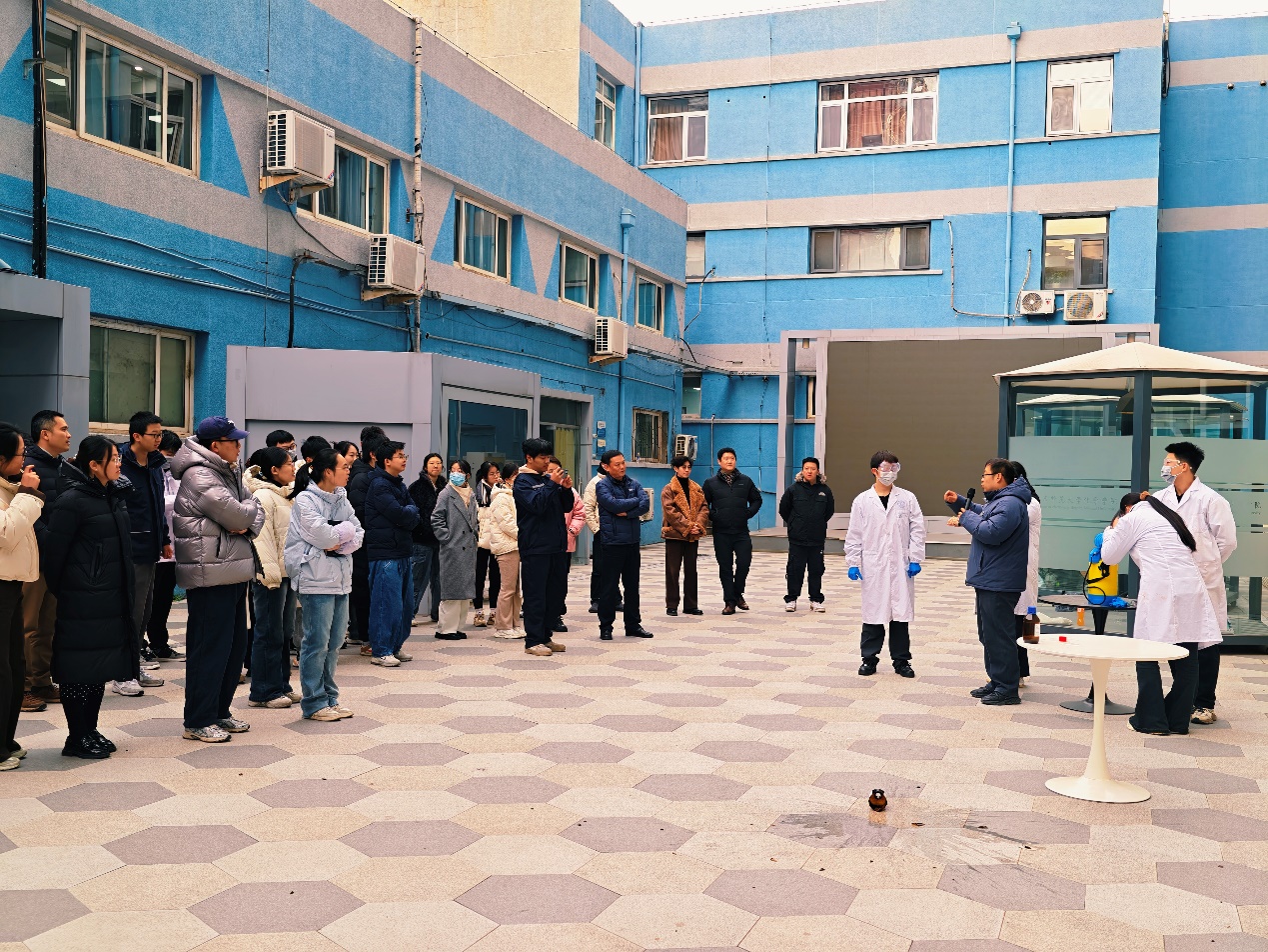 为检验学院师生应对实验室突发安全事故的应急处置能力,强化师生安全意识与自救互救技能,2025年11月26日下午,化学学院在化学楼东小院组织了实验室危险化学品泄漏应急演练活动,学院安委会成员、各实验室学生安全员、2025级部分新生参加活动。活动特邀教育部实验室安全检查专家组成员、北京科技大学赵雨霄老师担任现场解说与点评专家,由化学学院院长助理李会峰老师主持。本次演练活动也得到了学校实验室安全与设备管理处的大力支持,实设处处长左锐、副处长翟宇莅临现场观摩指导。