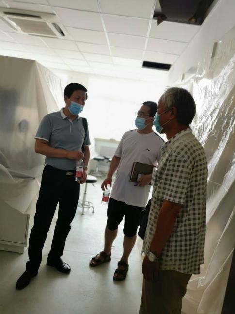 卢忠林书记对暑期高温施工人员的辛苦付出表示肯定,指出面临学生返校实验室全面开工,希望施工单位提高安全意识,在消防、暖通、电力增容方面与学校相关部门协调尽快推进工期,在疫情期间严格做好出入校管理,不能有任何松懈。张俊波副院长希望施工过程中做好防护,尤其是砸开竖井的管道要做好警示提醒及安全防护,在施工过程中要统筹考虑,加强配合,尽快完成工期。随后施工方具体回答了监理公司提出的关于防火阀与学校消防联动以及新装风管噪音等问题。