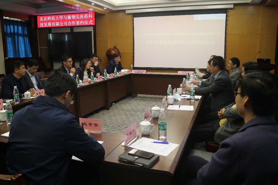 此次合作,双方将充分发挥新领先的产业、资源优势和北师大化学学院的人才、科研和平台优势,促进化学学院的科研成果转化、人才培养、学科建设水平,并进一步推进新领先产业升级,提升科研能力,共同为实现 “健康中国梦”作出积极贡献。