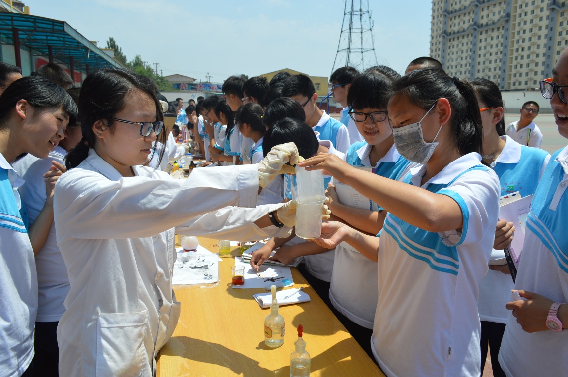 北京师范大学化学学院13级的本科生还结合化学专业特色,在祖冲之中学体育广场进行了“魔术烟雾”、“大象牙膏”、“神奇图画”、“消失的外壳”等多项趣味化学实验展示,这些实验项目受到了当地中学生的喜爱,学生之间也通过生动活泼的形式进行了科普的交流与讨论,激发了中学生学习钻研化学的兴趣,实验展示现场还将精心准备的大量课外书籍分发给了祖冲之中学的学生。这次展示活动不仅让学生在化学科普活动中感受到了百变的趣味化学,同时让中学生了解到了丰富多彩的大学校园生活。