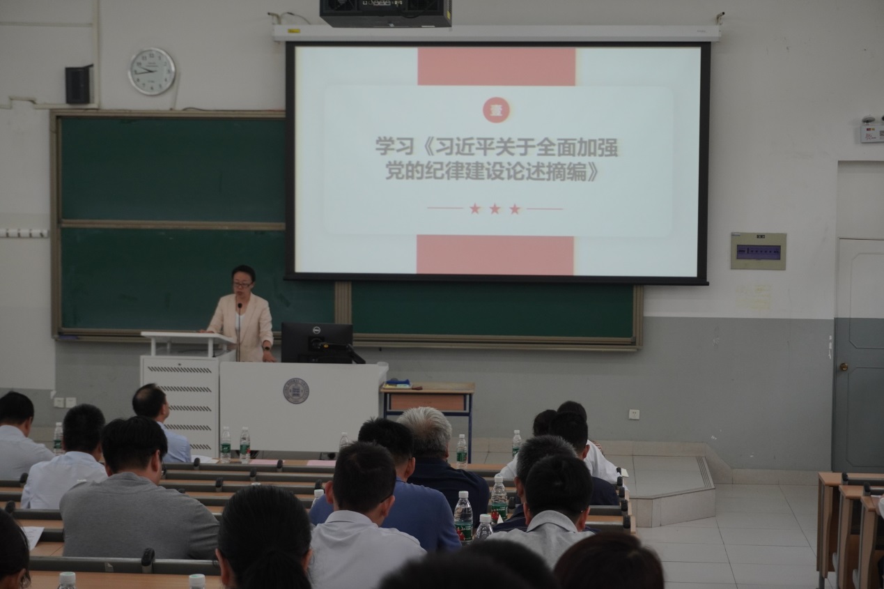 学院党委书记杨钊领学《习近平关于全面加强党的纪律建设论述摘编》。杨钊书记介绍《摘编》的主要内容以及党史中的纪律教育,指出纪律的基本功能在于教育、引导、警示、预防、惩戒、纠错,党的纪律是自律和他律相结合的实质。通过正面和负面两方面案例,强调纪律教育的重要性,要继续开展好下一阶段的党纪学习教育,警钟长鸣,戒尺高悬,做到心有敬畏、行有所止。