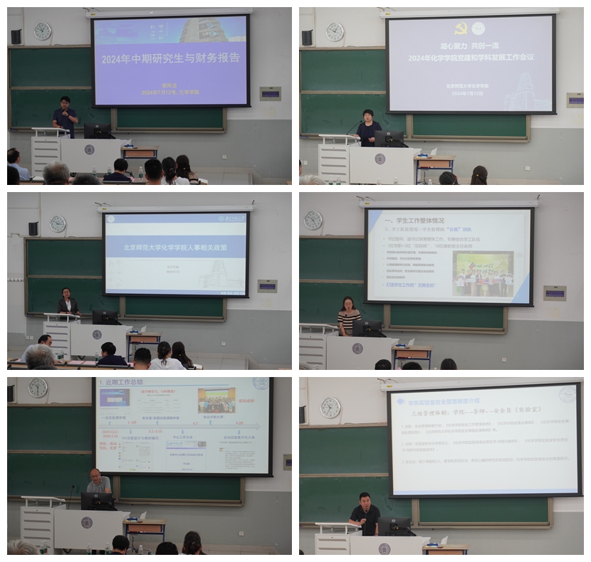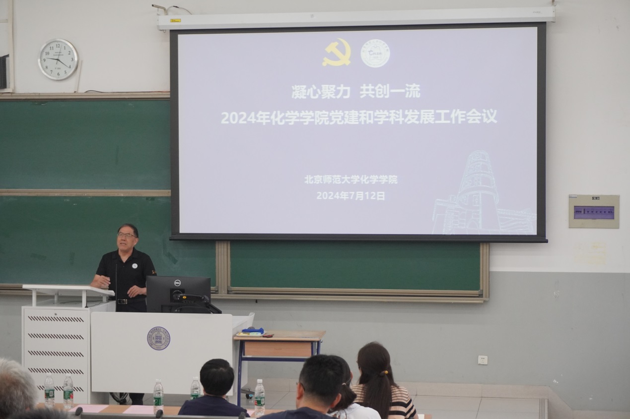 2024年7月12日,北京师范大学化学学院党建和学科发展工作会议在化二教室顺利召开。会议的主题是“凝心聚力,共创一流”,化学学院党政领导班子以及在校的教职工近百人参加了大会。