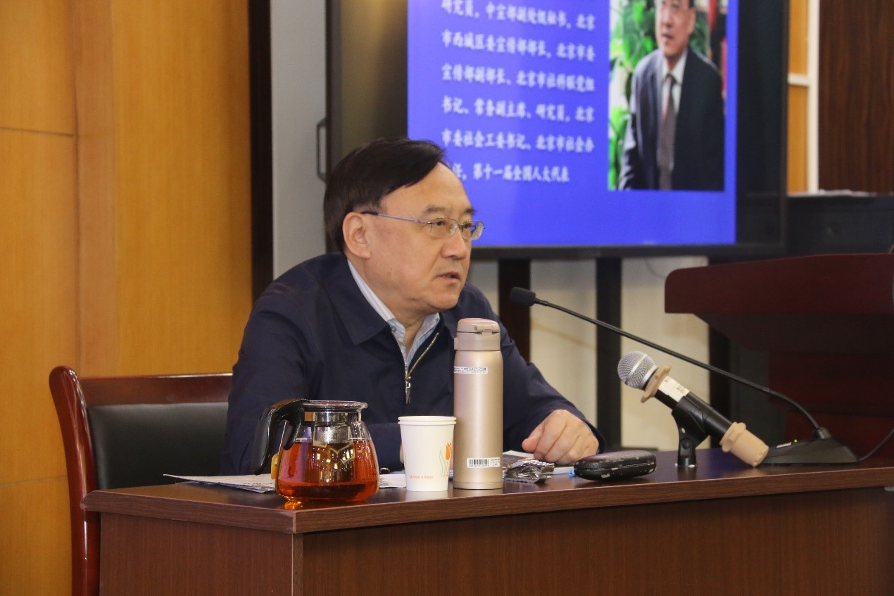 会议的第一阶段,北京师范大学中国教育与社会发展研究院教授、北京市社会建设促进会会长宋贵伦老师为学院老师做了“围绕主线,抓住关键,落到实处——认真学习贯彻党的十九届四中全会精神”的专题报告。宋老师首先从《中共中央关于坚持和完善中国特色社会主义制度、推进国家治理体系和治理能力现代化若干重大问题的决定》的意义、鲜明特色和内在逻辑,紧紧围绕全面建设社会主义现代化目标,坚持和完善中国特色社会主义制度体系,充分发挥我国社会建设制度的显著优势,把我国制度优势更好转化为社会建设效能等几个方面向老师们深刻解读了十九届四中全会的相关内容,使学院老师更深入地了解了党的十九届四中全会《决定》的意义和内容。