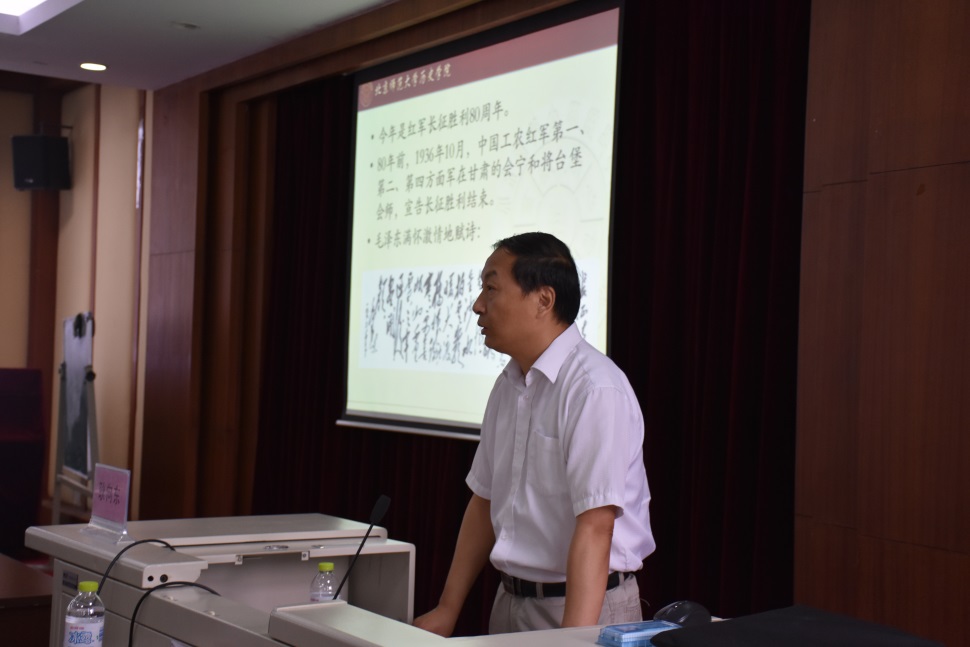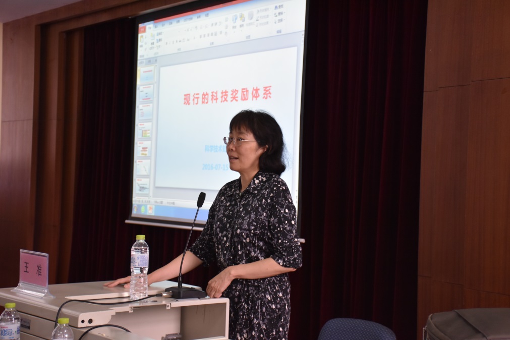教育处处长郑国民教授做了题为“对本科教育该科的思考”的报告,详细地分析了化学学院学科评估中的本科教学情况,从本科生培养方案的三制三化和优质通识教育课程的建立等方面为化学院的教学改革提出了合理的指导和建议。历史学院耿向东教授给化学院全体教师带来了“红军长征及其当代价值”的精彩演讲,从长征的历史背景、长征的过程和长征胜利三个方面详细介绍了红军长征的历史意义和当代价值。科技处副处长王准老师就现行的科技奖励体系情况,详细介绍了国家级、省部级科学技术奖的申请、评审和颁奖过程,并且热情地鼓励化学院教师积极申请各级科学技术奖项。
