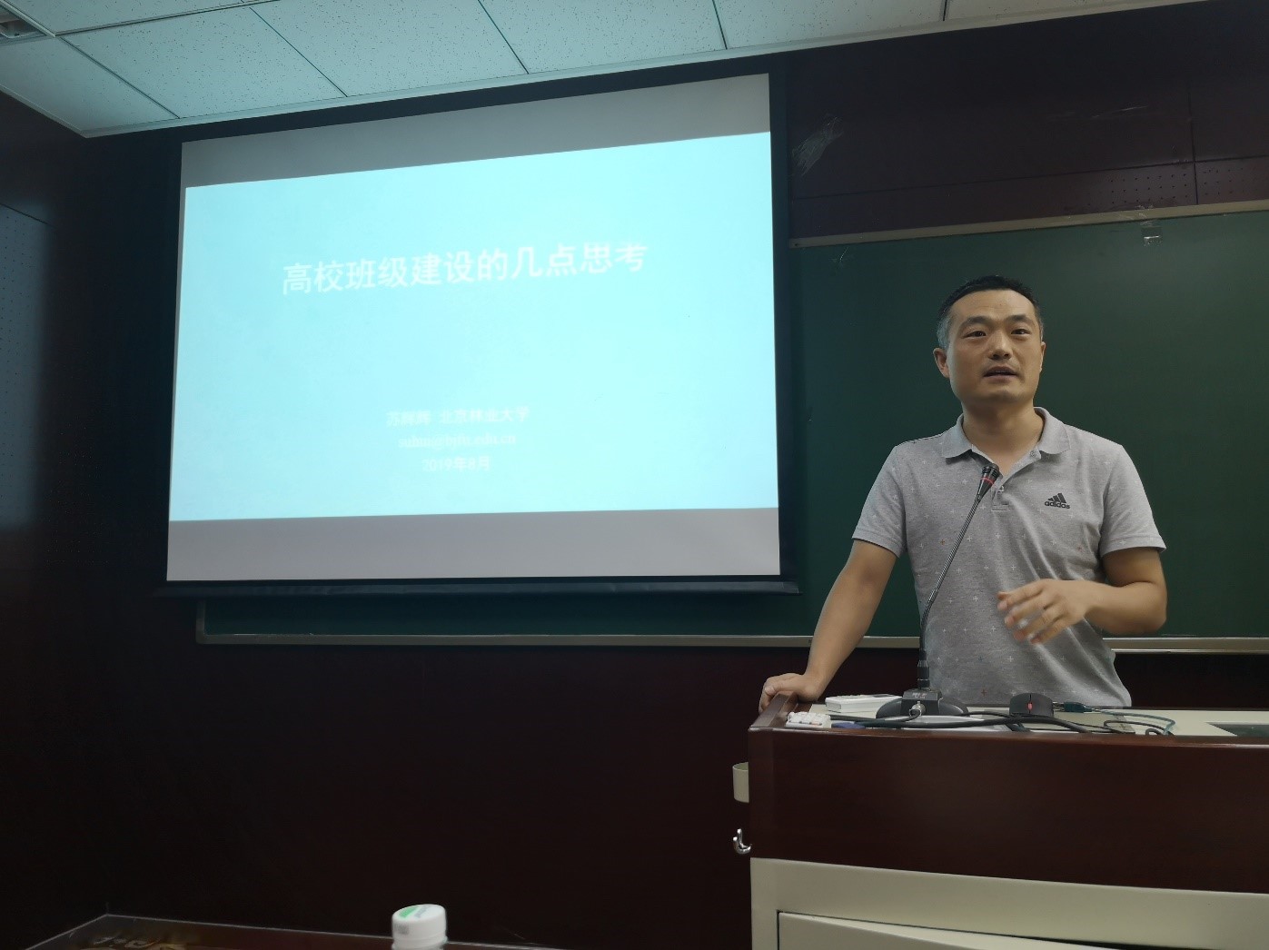 培训第一阶段,北京林业大学材料科学与技术学院党委副书记、副院长苏辉辉老师进行了高校班级建设的几点思考的专题讲座。苏辉辉老师从新形势下高校班级建设的意义和形势、优秀班集体的标准是什么、班主任与辅导员的工作有何区别、高校班主任工作方法、高校班主任主要工作内容、危机事件处理中班主任的工作、送给大学生家长的11句话等方面分享了班主任工作的方法,拓展了班主任班级建设的思路。