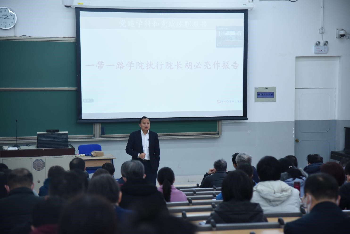 会议第一阶段为党建学科报告。首先学院邀请了北京师范大学一带一路学院执行院长胡必亮教授为学院教师做“理解‘一带一路’”的主题报告,胡必亮老师的报告围绕一带一路的相关背景,有关进展和挑战,重要意义等三个方面为老师们进行了分享,使老师们清晰了解了一带一路与对外开放、区域协调发展和构建人类命运共同体等方面的联系。学院老师们觉得胡老师的报告让大家开阔了眼界,提高了认识,对一带一路的发展充满信心。接着学院邀请了学校科研院副院长兼校地合作与成果转化处汪曙光处长为学院教师进行科技成果转化政策和工作思路的解读,内容涵盖成果转化相关的法律法规、管理办法、转化流程、促进机制等。汪老师的报告重点突出,针对性强,对于促进学院产学研发展将起到很大的推动作用。