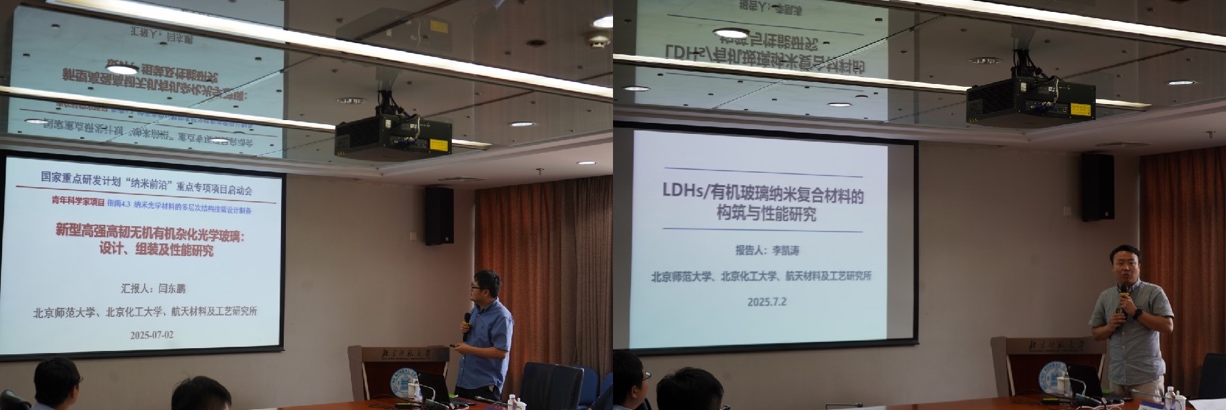 2025年7月2日,由北京师范大学牵头承担的国家重点研发计划纳米前沿项目“新型高强高韧无机有机杂化光学玻璃:设计、组装及性能研究”启动会暨实施方案论证会在北京师范大学京师学堂二楼会议室召开。会议由责任专家中国科学院金属研究所卢磊研究员担任专家组组长,贵州大学姜建壮教授、北京化工大学于中振教授、清华大学刘凯教授、中国科学院理化技术研究所张铁锐研究员、中国科学院化学研究所邱冬研究员、狄重安研究员共同组成专家组。北京师范大学科研院林小鹃副处长,化学学院院长毛兰群教授、副院长崔刚龙教授等领导出席启动会。项目研究团队北京师范大学闫东鹏教授、韩雪教授、江迎教授、张晓伟副研究员,北京化工大学梁瑞政教授、李凯涛副教授,航天材料及工艺研究所霍曼博士等参加会议。