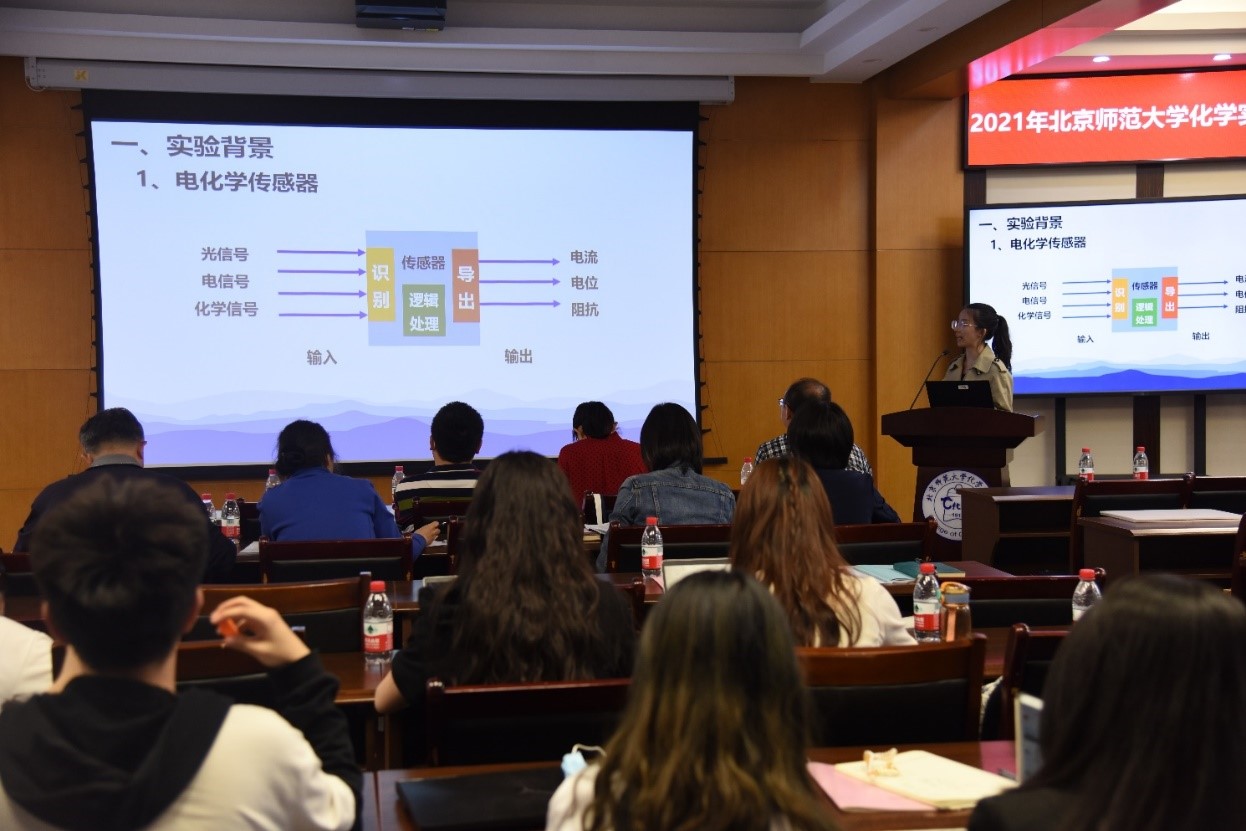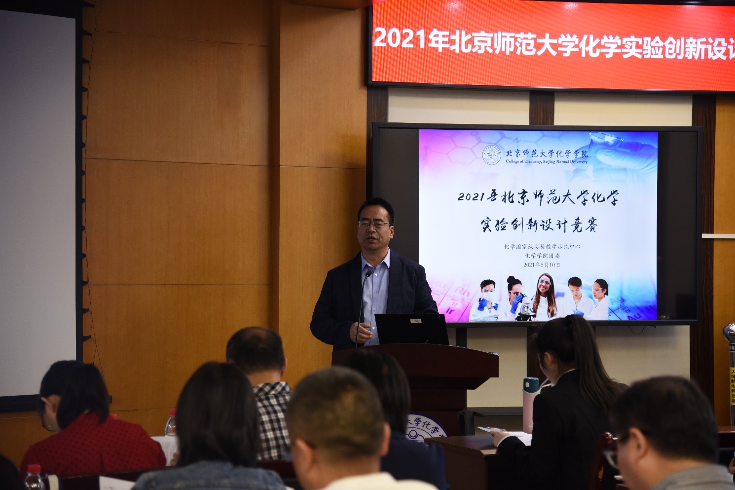 2021年5月10日下午,由北京师范大学化学国家级实验教学示范中心和化学学院团委联合举办的“2021年北京师范大学化学实验创新设计竞赛”在化学楼二楼会议室隆重召开。化学学院党委书记卢忠林老师、副院长魏朔老师以及实验教学中心的骨干教师和各参赛队的带队老师等十余名教师作为嘉宾和评委出席会议。本次竞赛旨在培养大学生的创新意识、创新精神和创新能力,为国家级比赛选拔优秀作品,活动得到了学院本科生的积极响应与参与,取得了良好的效果。青海师大化学化工学院的老师作为嘉宾观摩了本次竞赛。