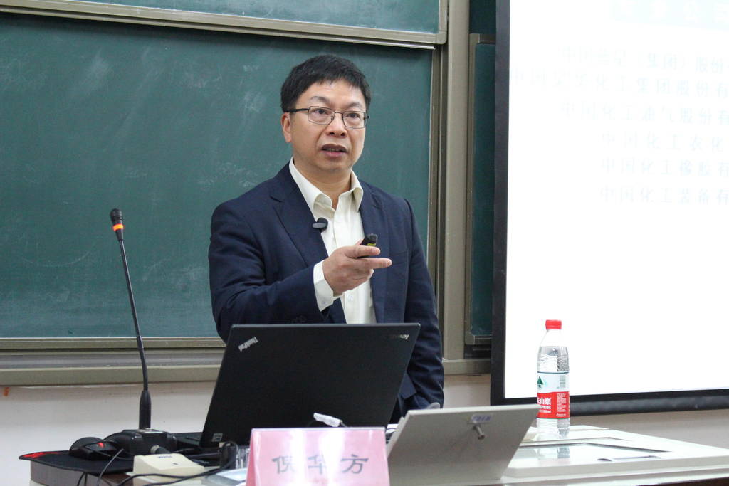 2017年12月17日,化学学院团校创新创业讲堂第一讲“创新是企业的核心竞争力”在教四楼201教室举办。本次讲座主讲嘉宾是中国化工集团蓝星公司的首席技术官倪华方老师,化学学院党委书记卢忠林老师主持此次讲座,共有160多名本科生、研究生、年青教师和企业人员参与。首先,倪总给同学们介绍了蓝星(集团)公司和中国化工集团传奇的发展过程。1984年,蓝星的创始人任建新带领7个人,借款1万元创立了中国第一个专业清洗公司——蓝星公司。依靠不断的奋斗和创新,蓝星公司已经成为中国化工新材料的领航者,主营业务在全球居领先地位,其中有机硅和蛋氨酸业务均居全球前三位。2004年蓝星成为中国化工集团公司下属专业公司,任建新成为中国化工集团公司总裁。目前中国化工是中国最大的化工企业,在世界500强列211位; 同时它是“零排放”管理的领先者,通过发达的管理和技术,最大程度减少污染和碳排放,创新技术开始向国际知名企业输出,正在努力成为具有国际竞争力的世界一流化工企业。同学们都为中国蓝星(集团)公司和中国化工集团的迅速发展和创新能力而感到骄傲自豪。