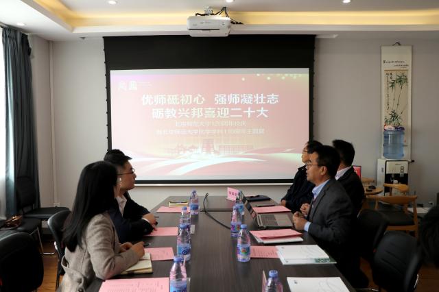 卢忠林书记对中国中化控股责任有限公司一行的到来表示热烈欢迎。他介绍了学院落实习近平总书记给北京师范大学“优师计划”师范生回信的情况以及学院在公费师范生培养、化学教育引领、中学化学名师培养、化学科普宣传等方面做的系列工作和未来规划。