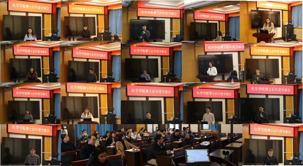 此次交流会由张俊波、董永强、江迎、申林四位教授分别主持。博士后就“用于前列腺癌诊疗的新型二聚体分子探针的基础研究与临床转化”、“质子调节神经传递的机制研究”、“探索基于BODIPY结构的新型放疗增敏剂:设计、合成与性能研究”、“功能多肽修饰界面用于高稳定活体电化学分析”、“用于心肌淀粉样病变诊断的PET显像剂研究”、“势能面交叉点自动搜索方法”、“X射线介导的铜离子配位稀土纳米晶用于肿瘤铜死亡治疗与成像”、“低维材料激发态载流子动力学的理论研究”、“锂空电池正极反应机制的原位X射线光谱研究”、“脑-机接口用纳米碳基复合材料”、“I-型光动力治疗光敏剂研究”、“单原子铁基催化剂氧还原性能调控及其抗芬顿效应的研究”、“磁场下的电子结构计算与应用”、“生理兼容活体原位电化学分析方法研究”、“图形多参考微扰理论”、“人工智能辅助活体电化学分析研究”、“动态可操纵的银基-长余辉金属有机配合物”、“基于蛋白质工具的神经化学调控研究”、“100%量子产率的本征态碳量子点的制备及用于高效电致发光二极管”、“酸性HER反应单原子电催化的新机制”、“感应烧结与Mg挥发控制提升n型 Mg3(Bi,Sb)2 的近室温热电性能”、“基于氨基取代策略大双折射率晶体制备及带隙调控”这些前沿研究主题进行学术汇报,报告内容引起与会师生积极讨论和深入交流。