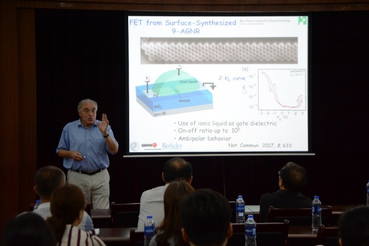 2018年7月19日上午9:00-11:00,德国马普高分子所Klaus Müllen教授 (Max Planck Institute)在化学楼二层会议室为化学学院师生作了题目为“Carbon Nanostructures by Design”的精彩学术报告。