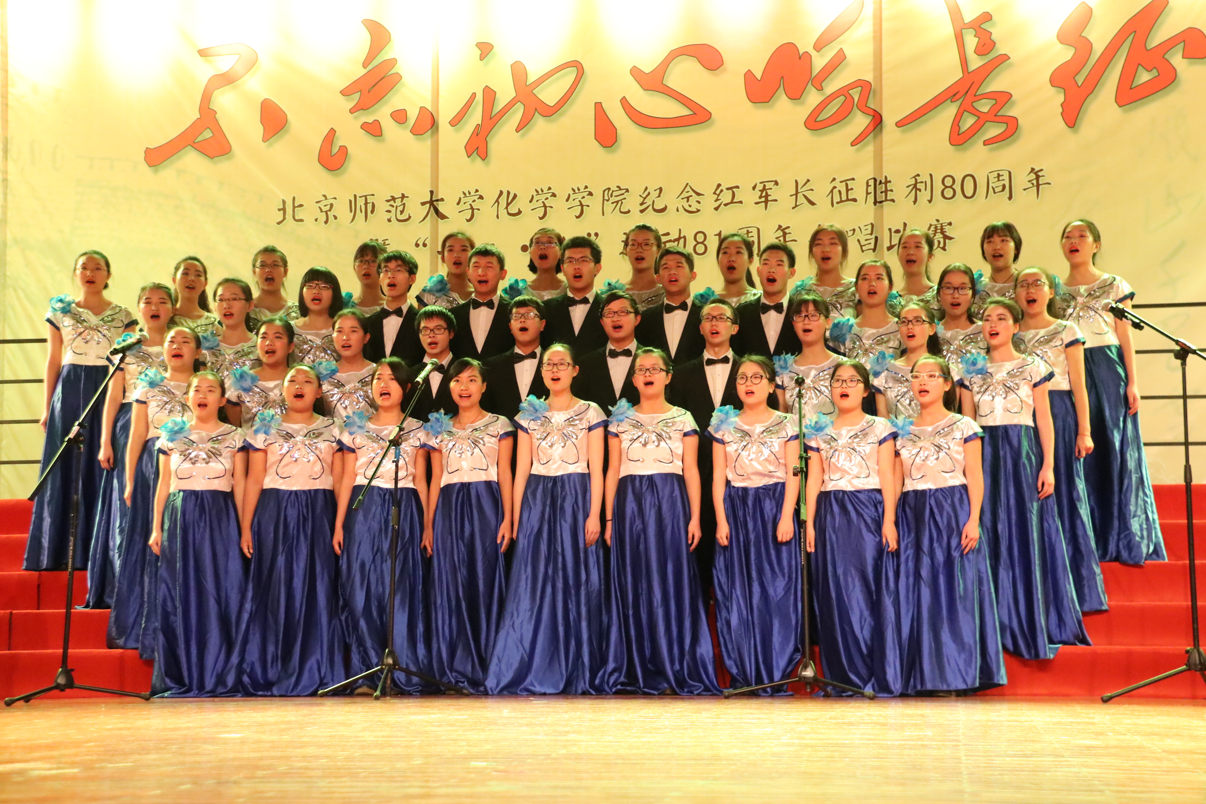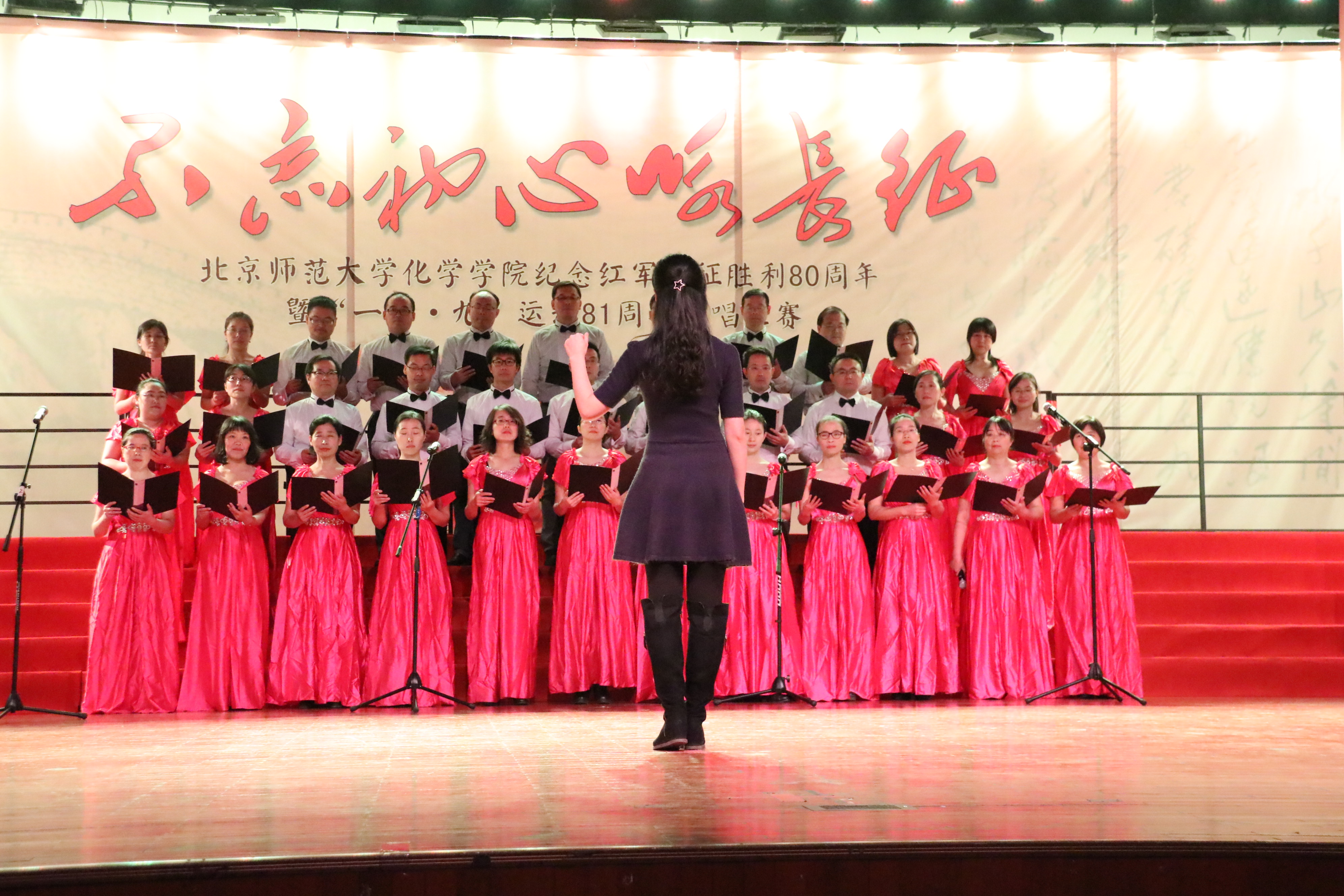12月5日晚,“不忘初心咏长征”-北京师范大学化学学院纪念红军长征胜利80周年暨‘一二•九’运动81周年合唱比赛在学生活动中心举行。北京师范大学副校长陈光巨、党委宣传部新闻中心常务副主任、机关一总书记李美仙老师,校工会常务副主席王琼老师,辅导员培训和研修基地执行副主任王显方老师,本科生工作处副处长隋璐璐老师,化学学院院长方维海老师,分党委书记卢忠林老师,常务副院长范楼珍老师,副院长张俊波老师出席晚会。