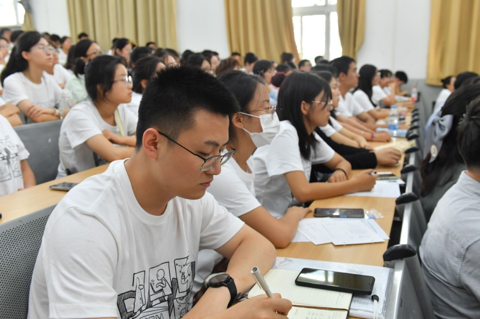 2009届校友王欢教授分享了自己求学经历和人生体会,鼓励新同学们:要结交良师益友,与老师和同学积极主动的沟通交流,结成学习和科研的队友;要及早开展科研训练,用于踏出舒适区,但不要随波逐流,怀揣一腔孤勇,筚路蓝缕,以启山林,永远在路上;要持之以恒,要明白在药物分子合成方案里,如果每一步都选最佳反应,最后往往不能得到产物,化学反应里,每一步的最优解叠加不等于全局最优解,学习、工作或者人生也是如此。小王子耐心浇灌的那株小玫瑰花,终有一天会盛开。希望同学们在学业有所收获的同时,不要错过个人成长的每一个重要事件和重要时刻。