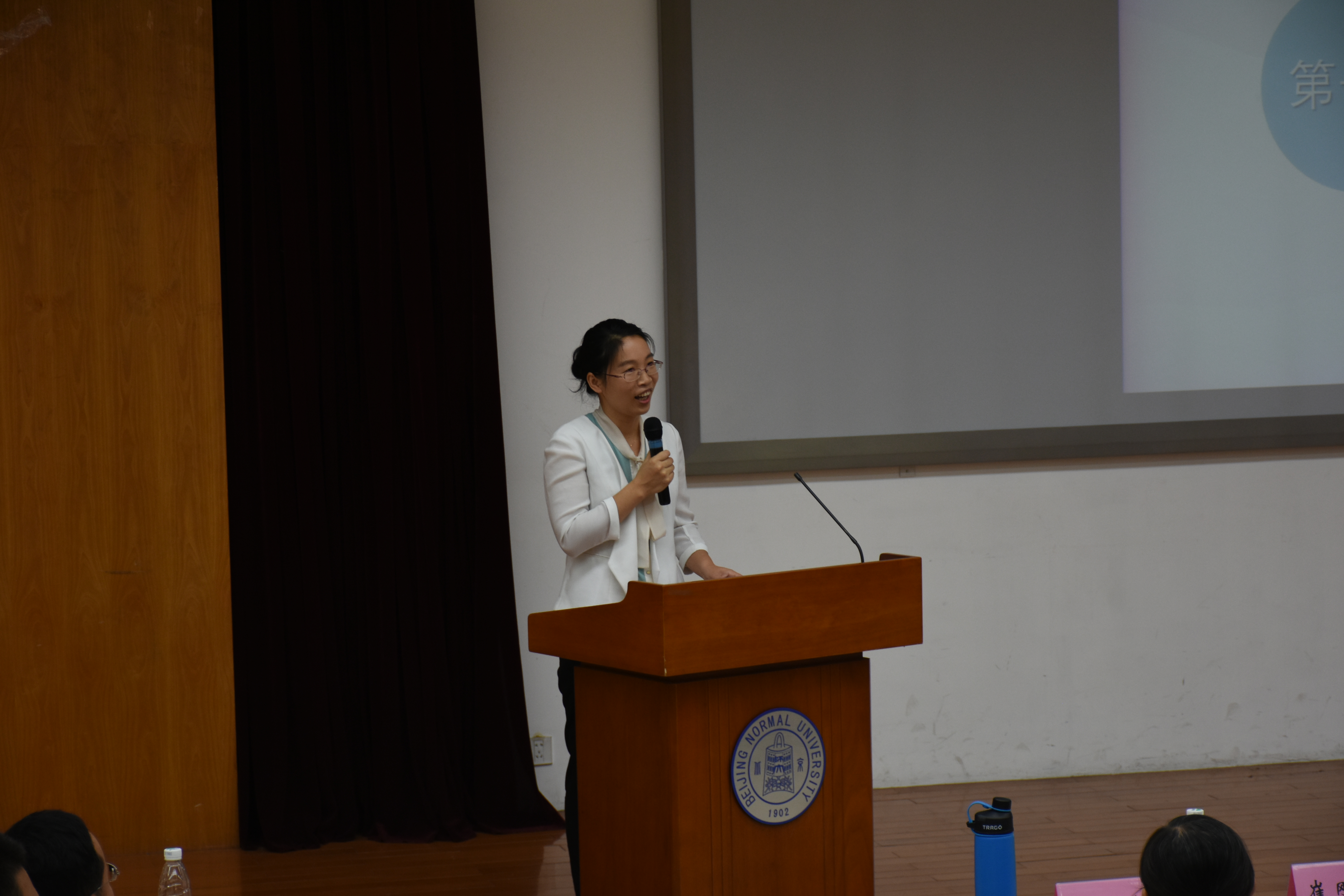 2017级本科生唐珑畅同学代表新生发言。她表达了自己对于迈入北师化院的欣喜和对于未来学习生活的向往,并表示将以优秀学长为榜样,要做有科学素养、有独立思维和过硬本领的北师大化学人。