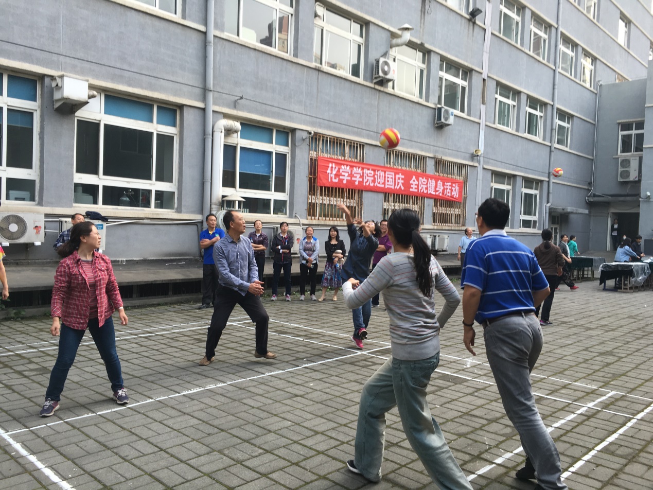 9月30日下午,在第六十七个国庆节来临之际,化学学院工会在化学学院东小院举行 “迎国庆,全院健身”活动。全院教职工积极参加,享受秋高气爽,空气清新的快乐时光。