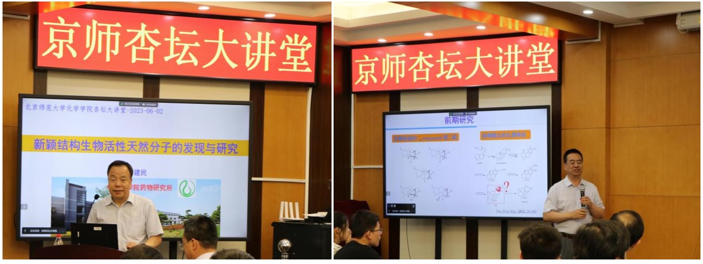 6月2日下午,北京师范大学科研大讨论学术论坛暨京师杏坛大讲堂第九讲在化学楼二楼会议室举行,珠海校区设立分会场进行同步直播。本次讲堂邀请到中国科学院院士,中国化学会会士,中国医学科学院学部委员,上海药物研究所岳建民教授做题为“新颖结构生物活性天然分子的发现与研究”的学术报告,向师生们分享科研前沿动态,讲授治学修身理念。报告由化学学院党委书记卢忠林教授主持。