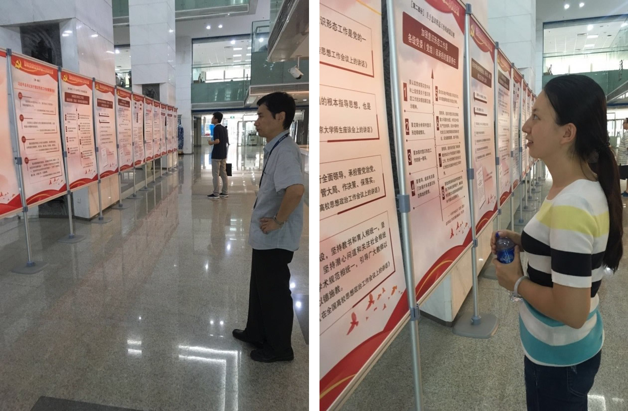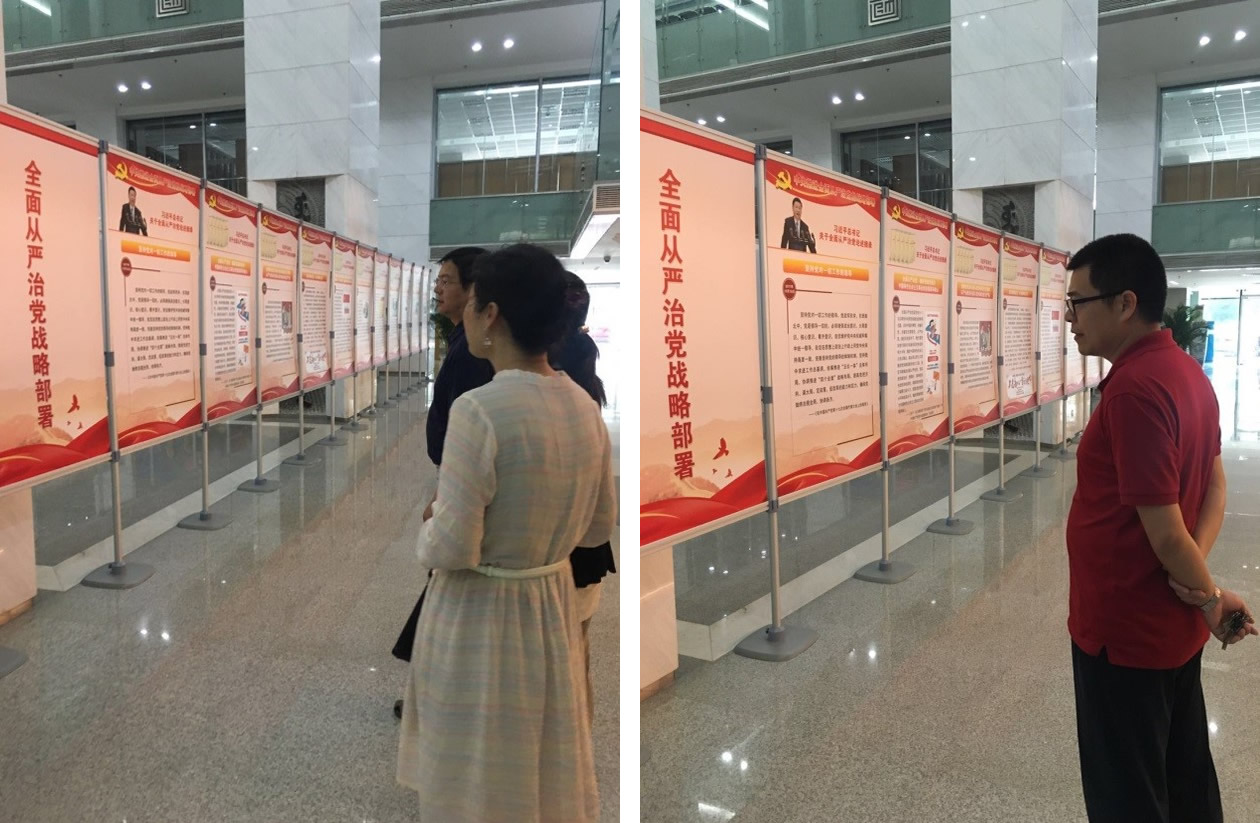 主题展览从多个侧面展示了党的十九大关于全面从严治党的战略部署,总结了党的十八大以来全面从严治党取得的显著成绩、积累的宝贵经验,分析了全面从严治党面临的新形势新任务。展板内容特别强调了高校作为全面从严治党的坚强阵地,要突出“四个强化”,更加科学、更加严密、更加有效地持续推进全面从严治党向纵深发展,为中国特色世界一流大学建设提供根本政治保证。我院党员教师们在参观展览之后也深有感触,纷纷表示对今后的工作有很大的警示意义。李希涓老师指出丰富的廉政案例为学生活动的开展提供了规范,例如加强校内讲座、论坛、报告会的申请和管理,学术研究无禁区、课堂授课有纪律、成果发表要规范等。卢忠林书记也指出,学院也将进一步落实全面从严治党战略,把党的政治建设摆在首位,全面加强党的纪律建设,严格要求每一个党支部、每一位党员, 不忘初心、牢记使命,保持和发展党的先进性和纯洁性。