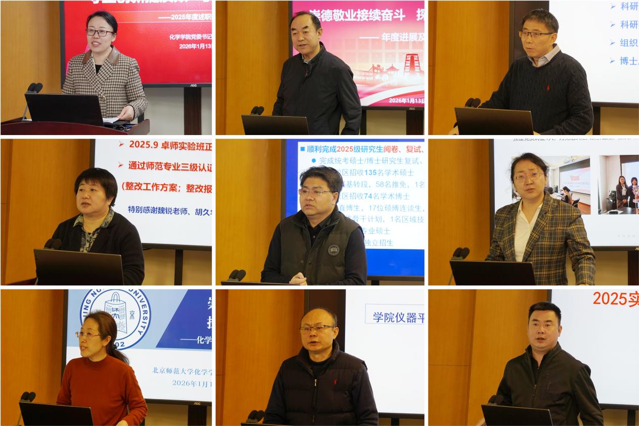 2026年1月13日,北京师范大学化学学院在二楼会议室召开全院教职工大会暨2025年度党政领导班子述职测评会。会议由学院党委书记杨钊主持,学院百余名教职工参加了本次会议。