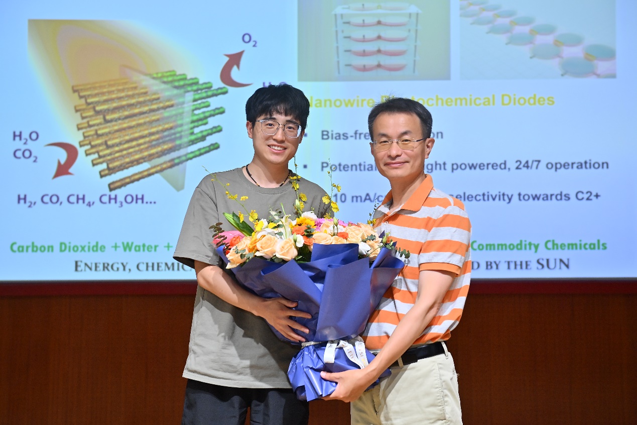 报告会上,杨培东教授以让“液体阳光”解决全球变暖问题为切入点,介绍了纳米材料的性质及其在多个领域中的独特应用,特别讲述了他的研究团队在纳米线技术捕捉二氧化碳并进行转化中的创新思路和系列进展,阐释了利用纳米线技术进行人工光合作用的原理及优势。人工光合作用能将二氧化碳变废为宝,同时能极大的缓解全球变暖等环境问题,具有重要的科学意义和工业应用价值。杨培东教授还结合自己的科研经历,深入浅出介绍了人工光合作用研究领域的发展历程、目前取得成绩以及尚存的关键科学和技术问题,展示了国际顶尖科学家的科学思维和创新追求。