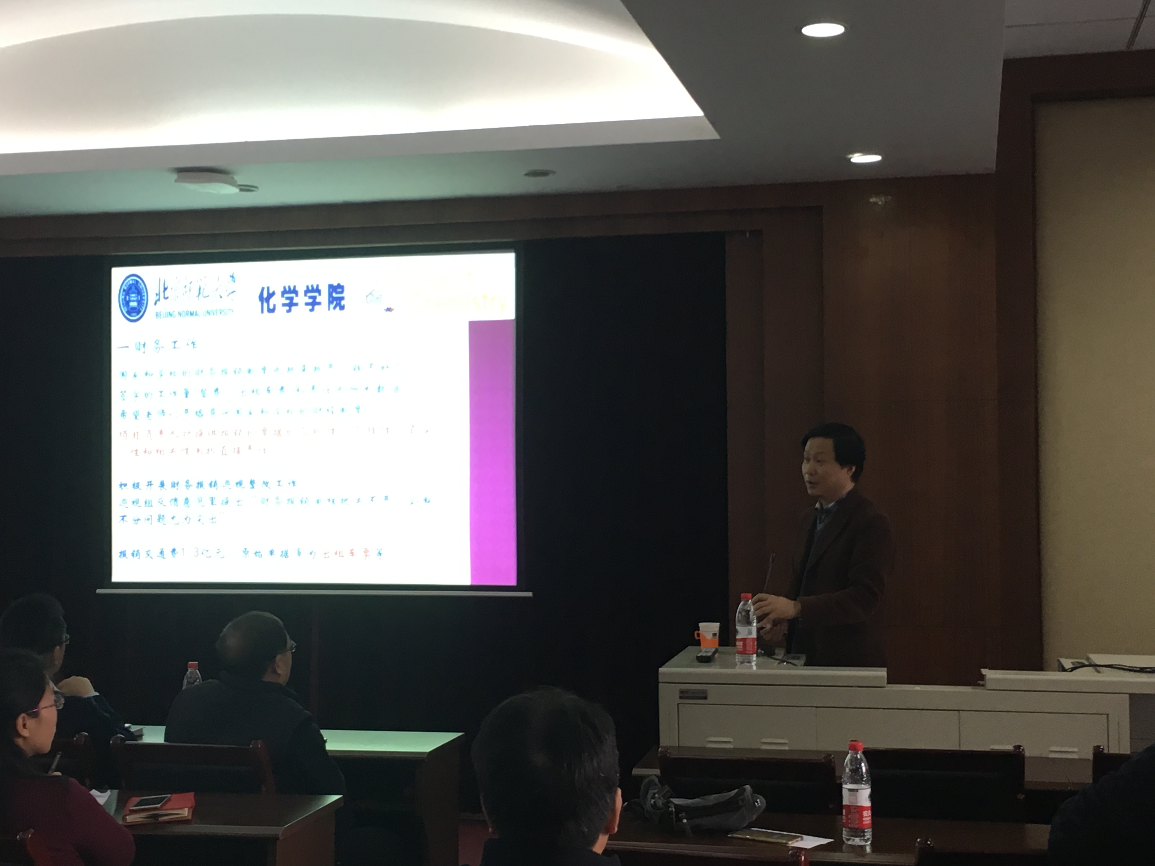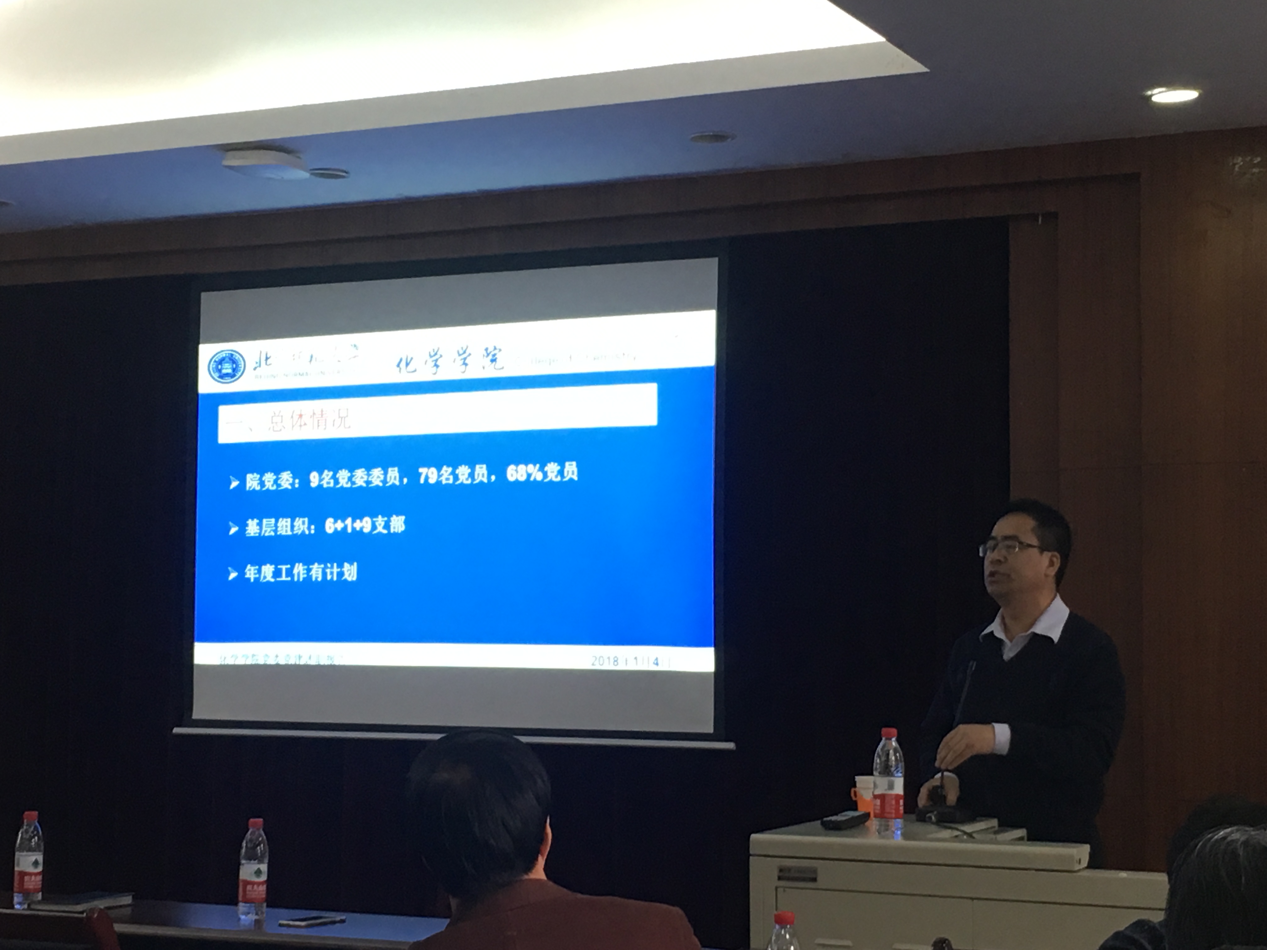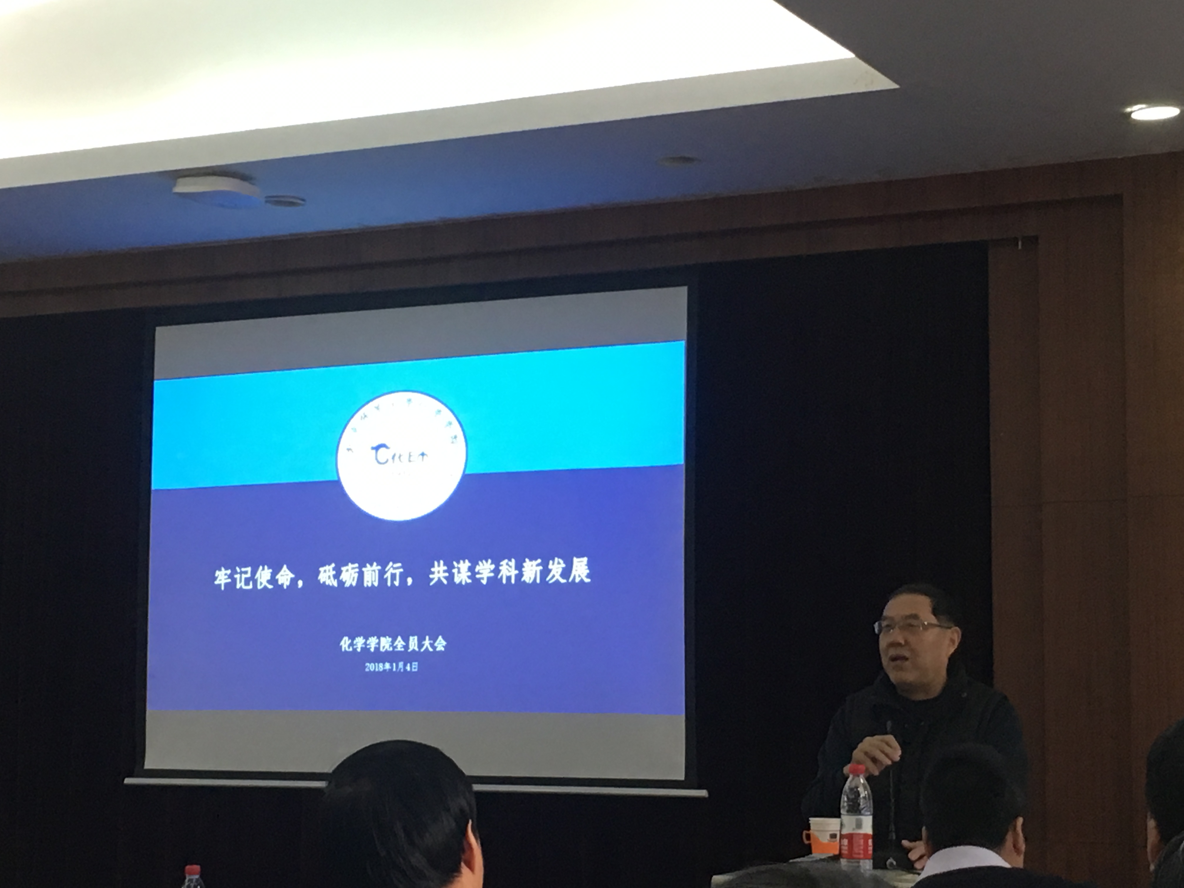 2018年1月4日,化学学院在二楼会议室召开了2017学年党政领导述职大会,会议主题是:牢记使命,砥砺前行,共谋学科新发展。会议由化学学院院长方维海教授主持,全院教师共同参会。