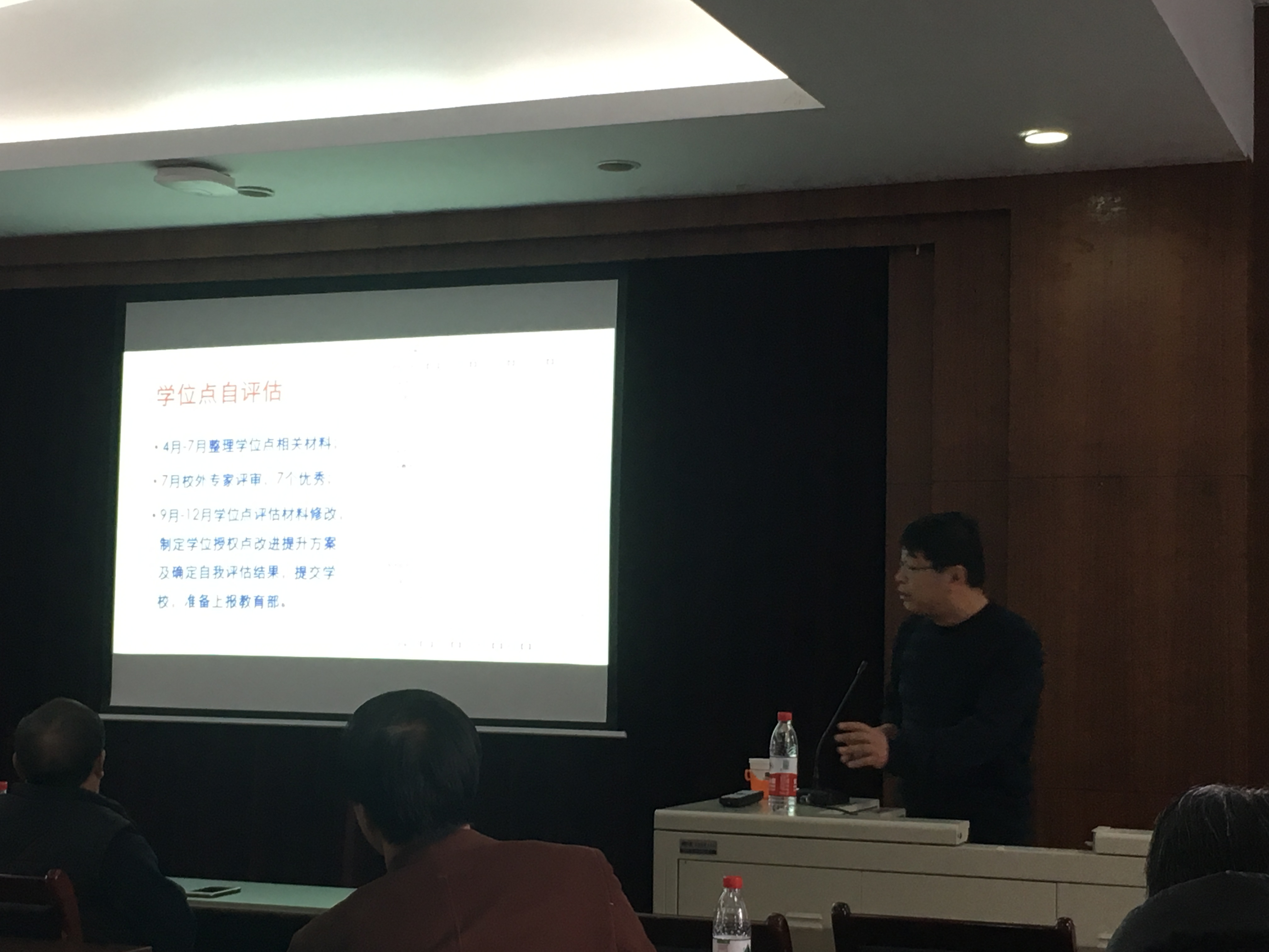 会议第一阶段是党政领导班子述职。首先,教学副院长范楼珍教授就学院本科教学工作进行了报告,总结了本科生教学试评估、本科招生宣传、本科教学国际化等方面的工作,介绍了2017年学院在教学方面取得的重要奖项以及今后教学工作要点。随后,负责行政财务的副院长张俊波教授就学院安全稳定、财务制度等方面进行了总结报告。孙根班副教授代替科研副院长薄志山教授就研究生教学与培养、科研相关情况等方面进行了汇报。学院党委书记卢忠林教授就学院党委的工作进行了报告,包括积极贯彻落实党的精神、加强党风促进安全稳定、砥砺前行营造全员育人等六个方面的总结以及学院党委一年来所取得的重要成绩。最后,院长方维海教授对学院和学科发展情况进行了报告,期望学院和学科有更大更好的发展。