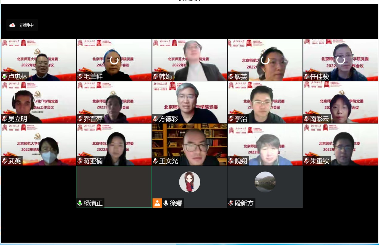 院长毛兰群讲话表示,作为无党派人士自己充分体会到党的关心和关怀,一直以来不断加强党的理论学习和培训,不断提高政治站位。党的二十大报告首次将教育科技人才一体部署,作为北师大的教师,我们更要承担时代使命,做好教学科研工作,全力培养人才、优师。党外人士更要紧密团结在党中央的周围,落实党的教育方针,涵养家国情怀,坚持立德树人,全力培养社会主义建设者和接班人。党委书记卢忠林围绕党的建设、学科庆典、民主建设、社会服务、珠海校区发展、化学楼环境改善等方面介绍了学院取得的成果,期望学院教师了解时政、把握大局,积极融入学院教学科研、社会服务等核心发展任务,共创佳绩。