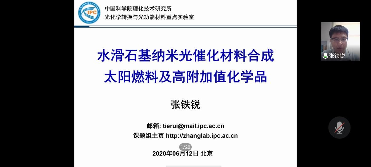 2020年6月12日15:30,BNU化学“云讲堂”第三讲在腾讯会议app上成功举办。中国科学院理化技术研究所张铁锐研究员应邀为化学学院师生做了题为“水滑石基纳米光催化材料合成太阳燃料和高附加值化学品”的讲座。老师、同学积极参与,讲座取得热烈反响。