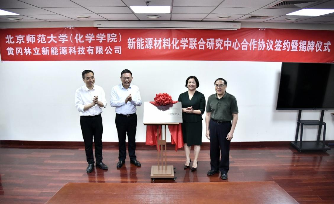 5月24日上午,北京师范大学(化学学院)-黄冈林立新能源科技有限公司新能源材料化学联合研究中心合作协议签约暨揭牌仪式在我校举行。北京师范大学副校长康震,中国科学院院士、励耘教授李亚栋,中国科学院院士、化学学院教授方维海,黄冈林立新能源科技有限公司(以下简称林立公司)董事长马晓玲出席仪式。学校化学学院、职能部门负责人和师生代表,以及林立公司相关负责人参加仪式。签约暨揭牌仪式由学校化学学院党委书记卢忠林主持。
