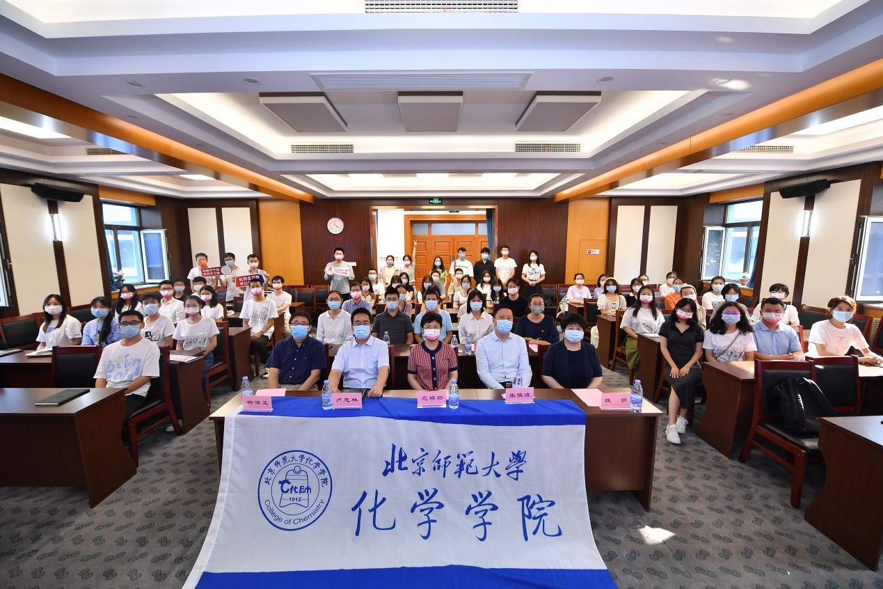 副院长杨清正介绍了学院的重大科研教学平台,如理论及计算光化学教育部重点实验室、放射性药物教育部重点实验室、能量转换与存储材料北京市重点实验室、国家级化学实验教学示范中心、国家级虚拟仿真实验教学示范中心等,并介绍了学院近年重大科研成果和研究生培养情况,勉励同学们充分利用学院的科研平台和资源,激发自己的科研潜力,学有所成,取得更优秀的科研成果。