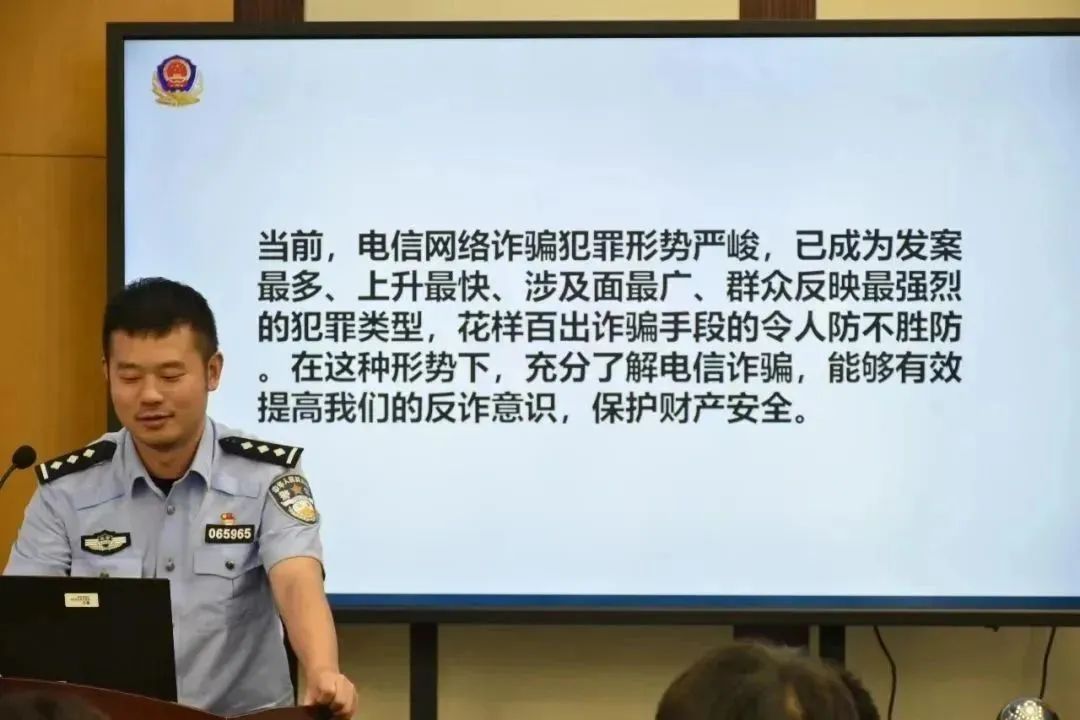 在讲座的开始,刘所长向大家讲述了预防电信诈骗的必要性,并介绍了什么是电信网络诈骗。电信诈骗,又称非接触性诈骗或远程诈骗,是指以非法占有为目的,利用手机短信、电话、网络电话、互联网等传播媒介,以虚构事实或隐瞒事实真相的方法,骗取数额3000元以上的行为。