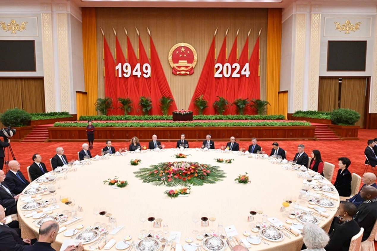 9月27日,庆祝中华人民共和国成立75周年外国专家招待会在北京人民大会堂举行,中共中央政治局常委、国务院副总理丁薛祥出席并致辞。