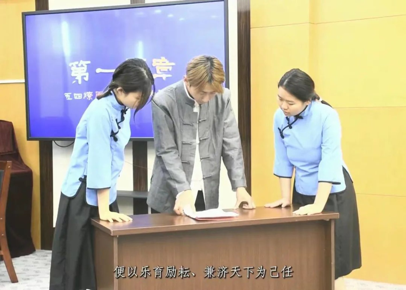 敢将山河再丈量,心似骄阳万丈光。短剧以“爱国救亡,时代先声”为主题,聚焦巴黎和会中国外交失败这一典型场景,以饱满的神态再现了师大青年敢于为国发声、敢于投身救亡图存前线的非凡勇气与热爱华夏土地、心系家国百姓的博大襟怀。让同学们跨越百年时光再一次遥望师大的峥嵘校史,从中领略百廿年来历久弥新的青春热血与家国情怀。